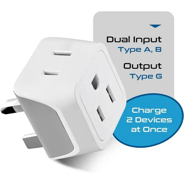·2 in 1 INPUT UK TRAVEL PLUG ADAPTER: Charges more devices at once with Ceptics UK adapter - Conveniently plug up to 2 gadgets with Ceptics to a single Type G adapter. Our 3-pack Travel adapter set supports standard 2 and/or 3-pronged flat pin plugs from N. America.