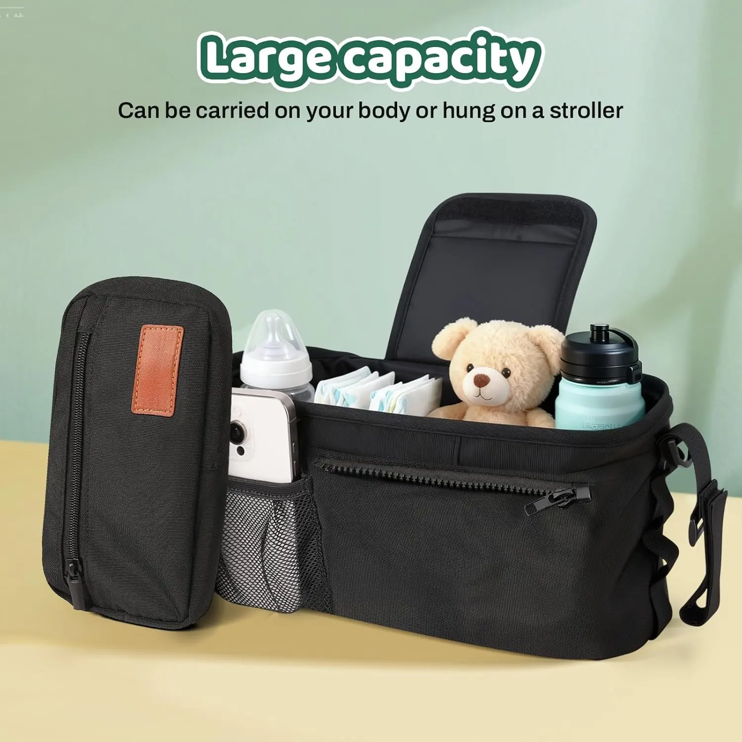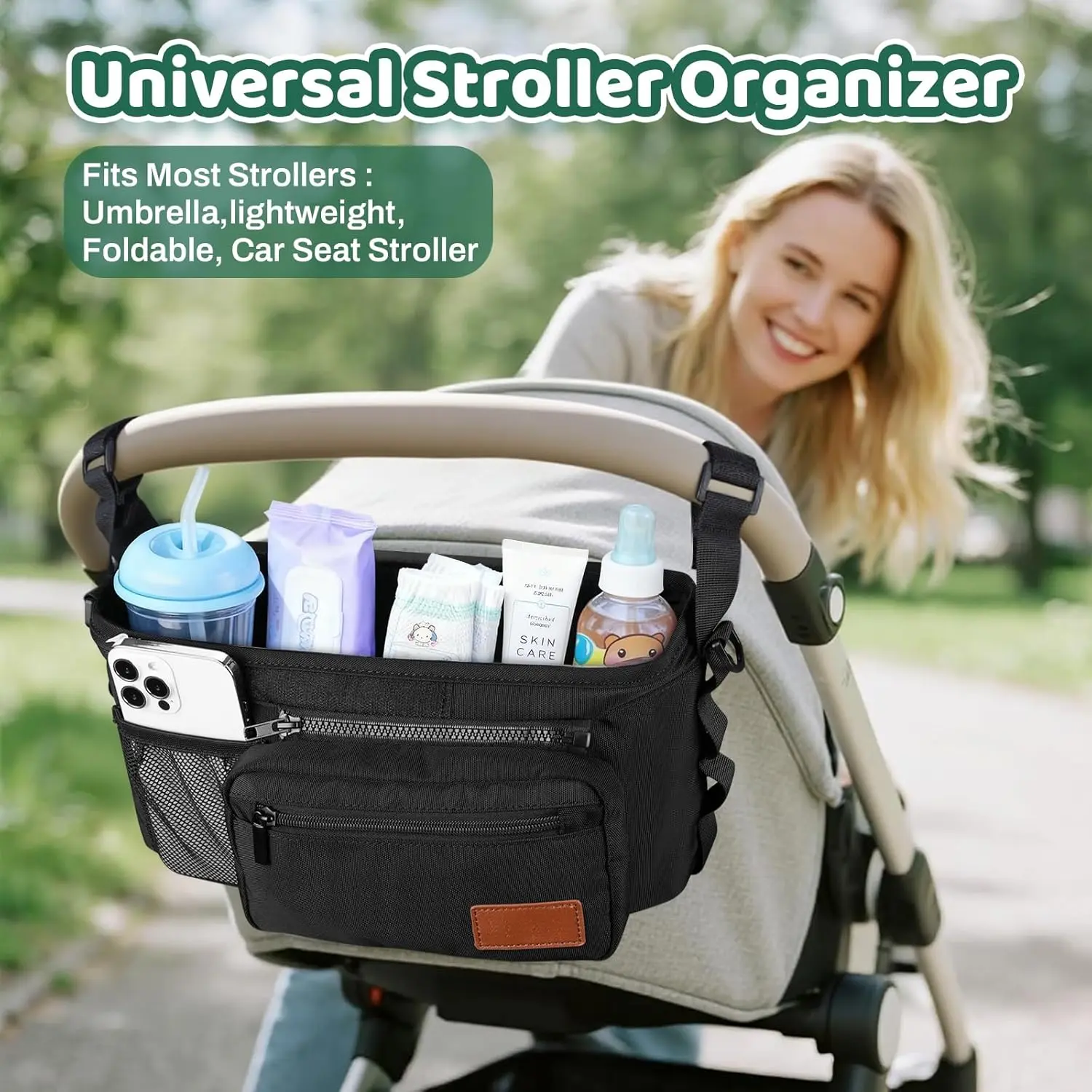 Universal Stroller Organizer with Cup Holder Detachable Phone Bag Non-Slip Straps Baby Essentials Stroller Caddy Fits Uppababy First Mothers Day Gifts for New Mom