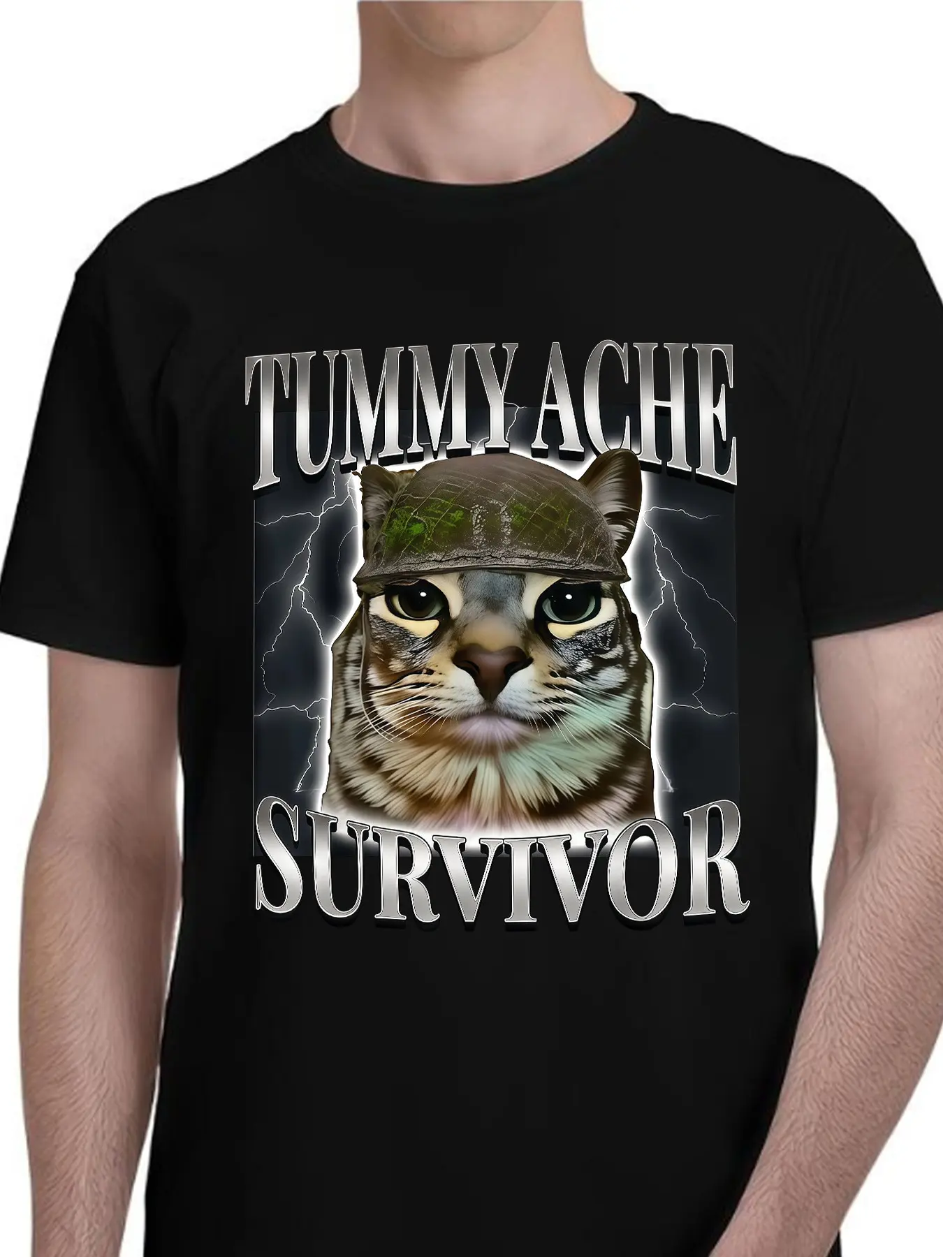 Unisex Funny Cat Print T-Shirt, Casual Humor Tee, Military Cat Design, Z-Gen Style, Daily Wear, Home Relax, Tiktok Trendy