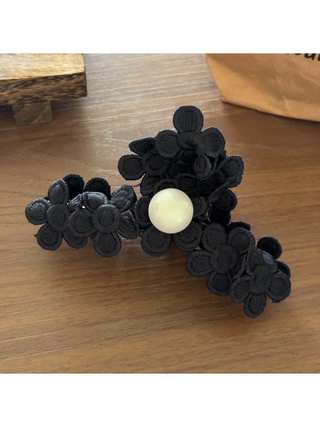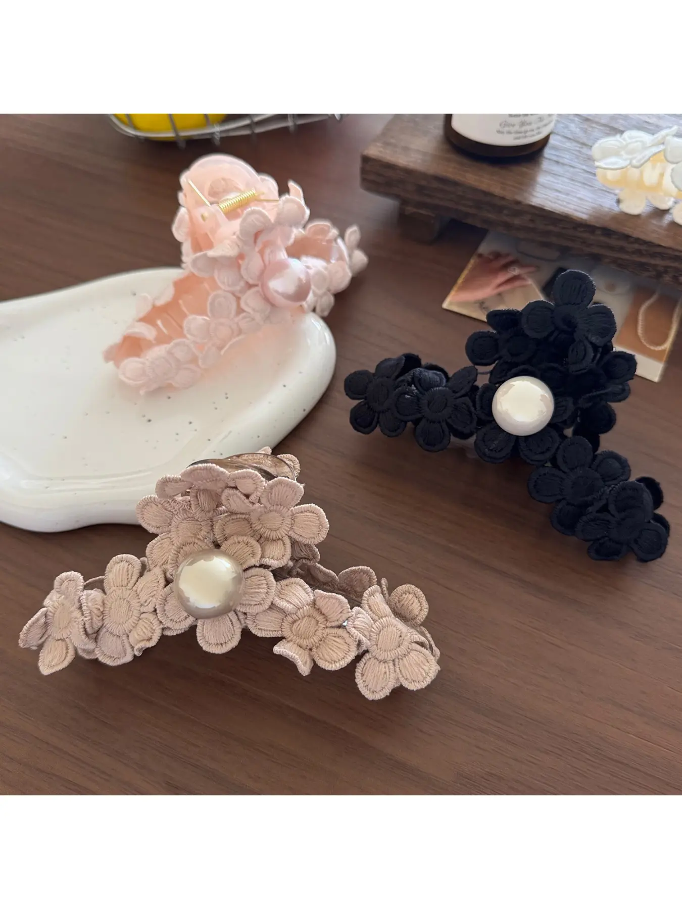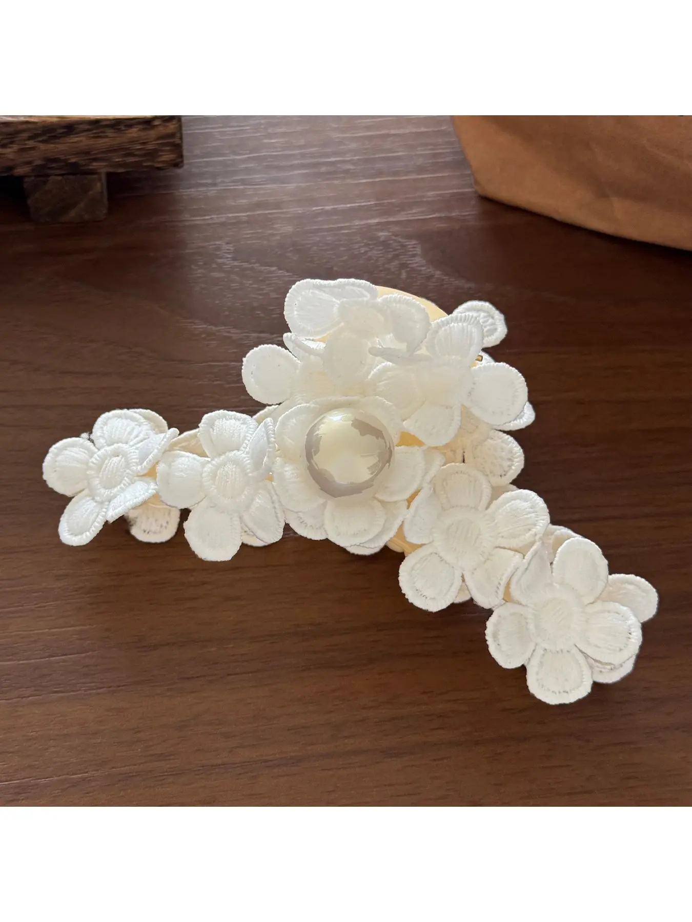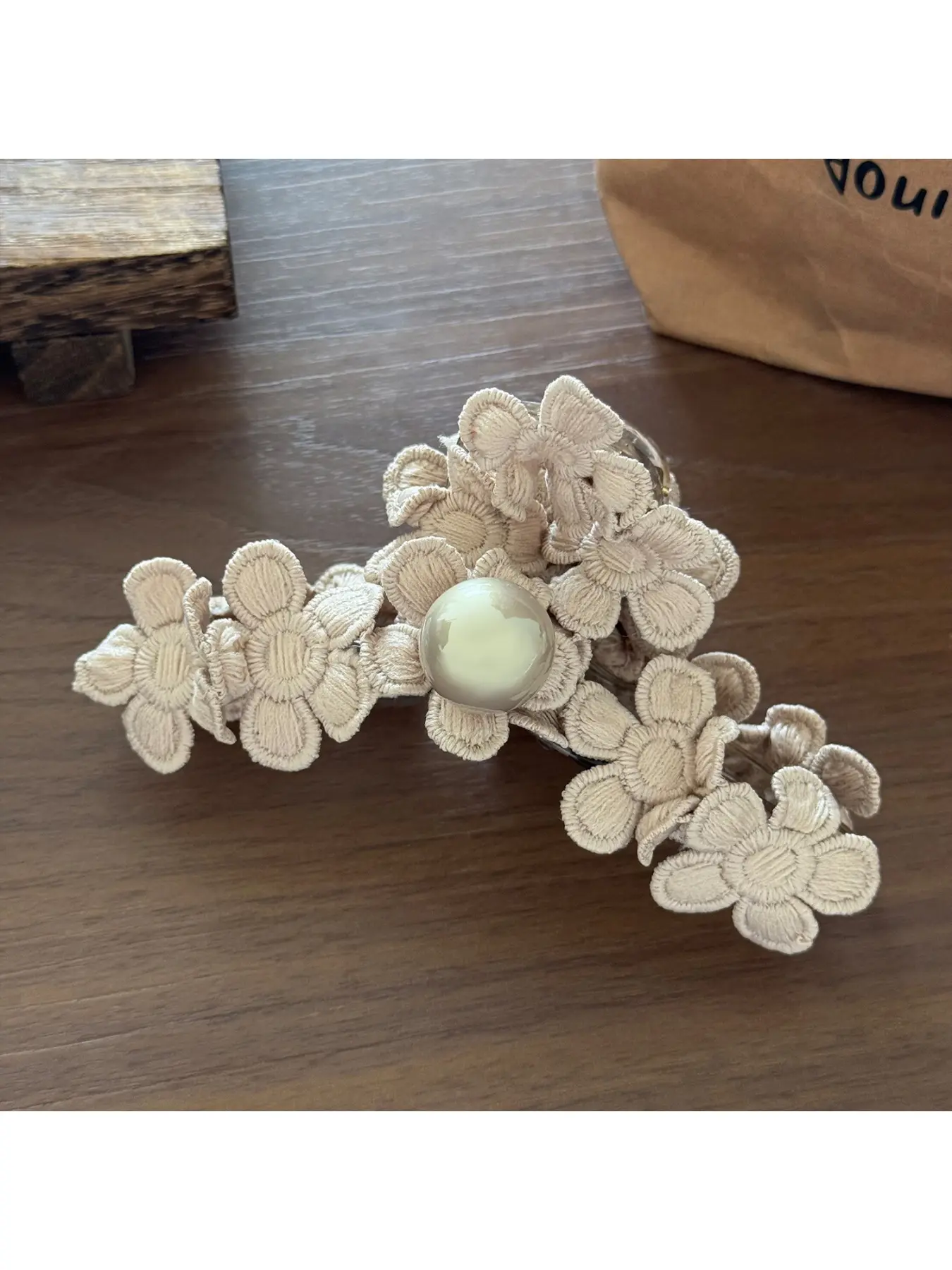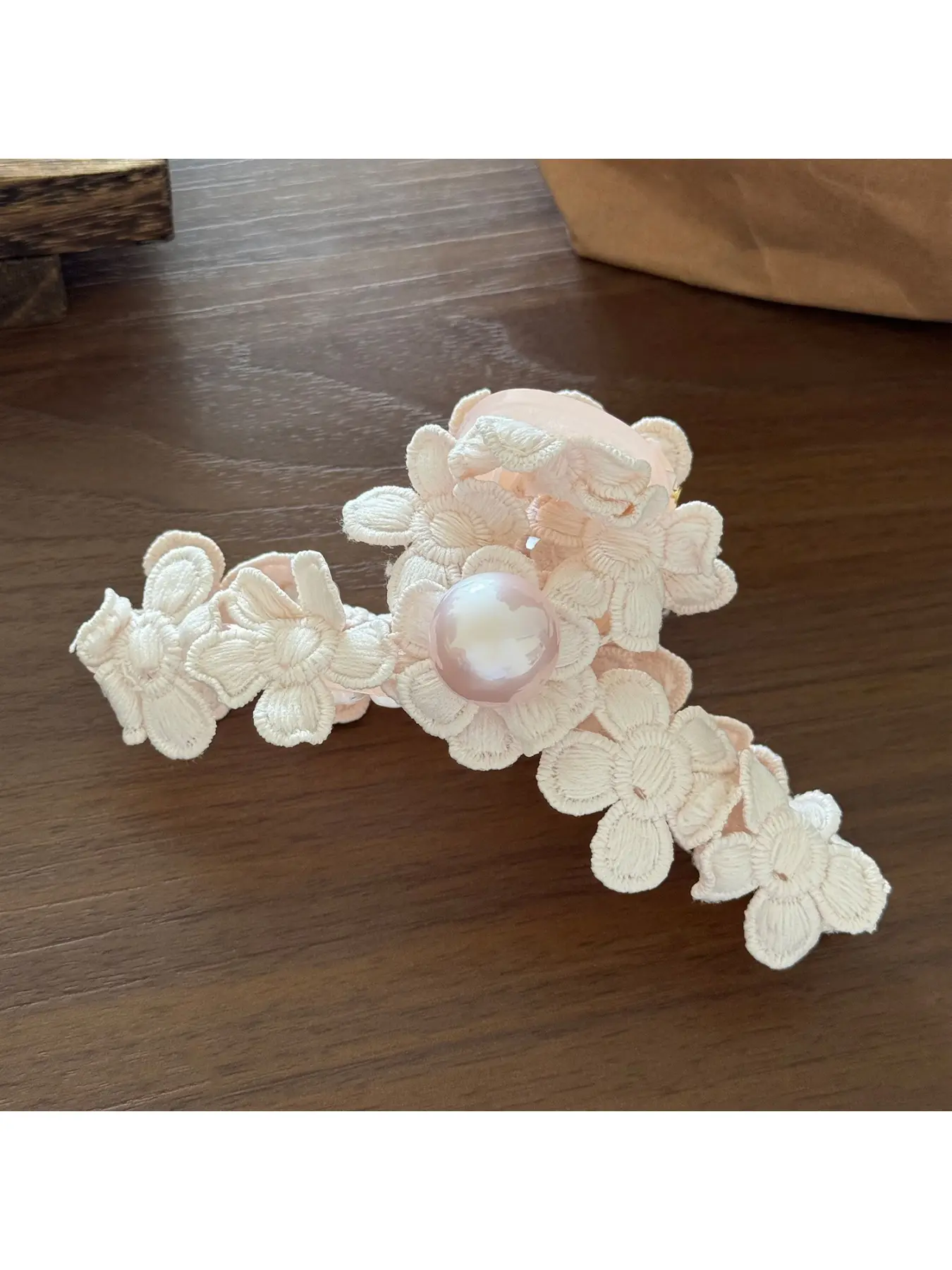 Whimsical Embroidered Floral Claw Clip | Dreamy Pearl-Encrusted Hair Clip for Ethereal Updos | Romantic Cottagecore Accessory