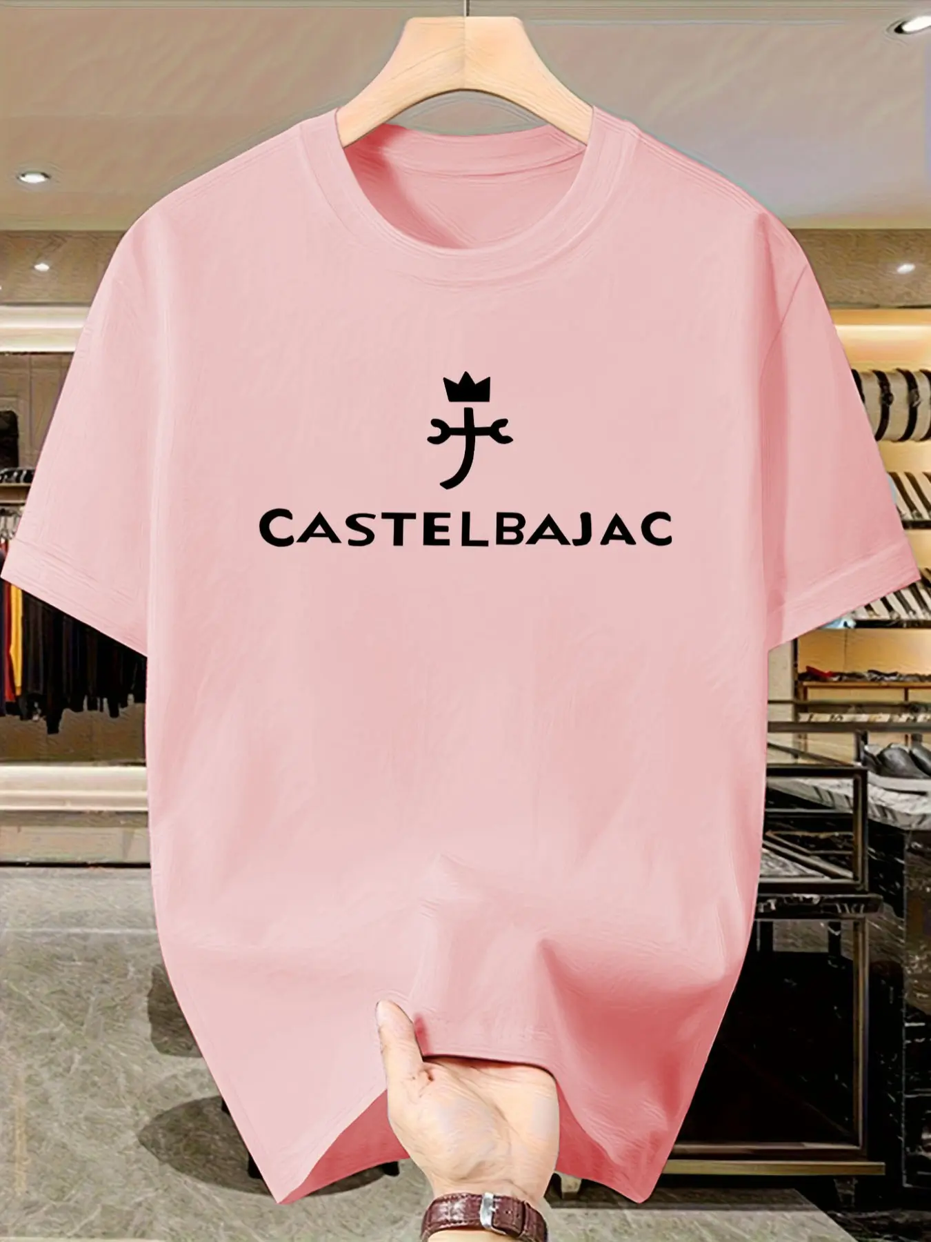 Castelbajac Men's Print T-Shirt, Casual Short Sleeve Slim-Fit Top, Crown Pattern, No Button or Zipper, Ideal for Daily Wear