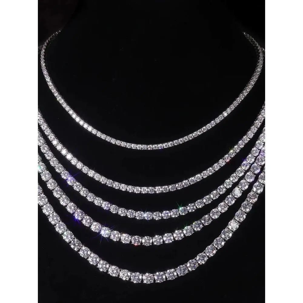 TY GRA Certified Moissanite Tennis Necklace 2/3/4/5/6.5mm Solid Sterling Silver Diamond Tennis Necklaces for Women Man