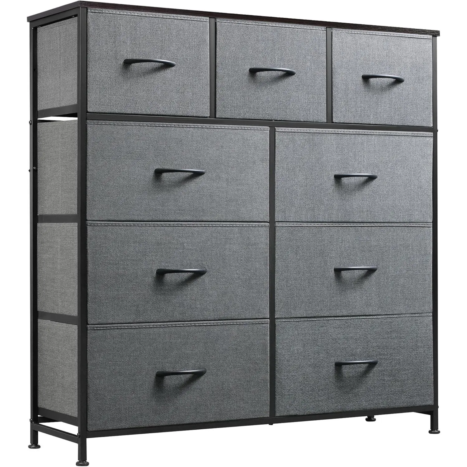 9-Drawer Dresser, Fabric Storage Tower for Bedroom, Hallway, Entryway, Closet, Tall Chest Organizer Unit with Fabric Bins, Steel Frame, Wood Top, Easy Pull Handle, Dark Grey