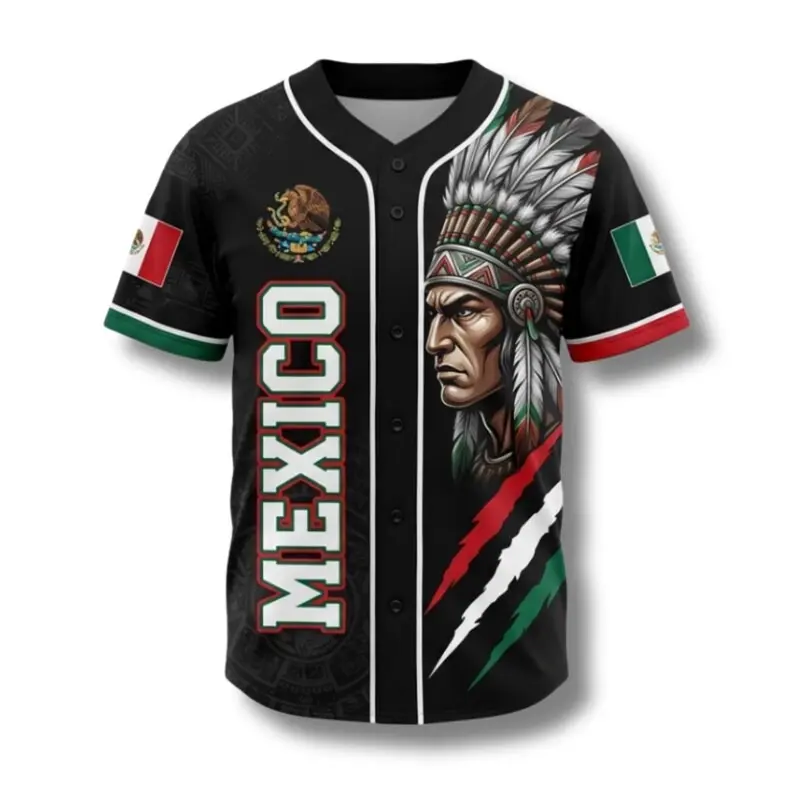 Mexico Native Indian Chief Baseball Jersey Unisex Oversized Streetwear Aztec Eagle Flag Graphic Tee Summer Casual Gym Sport Outfit Men Women Festival Gift