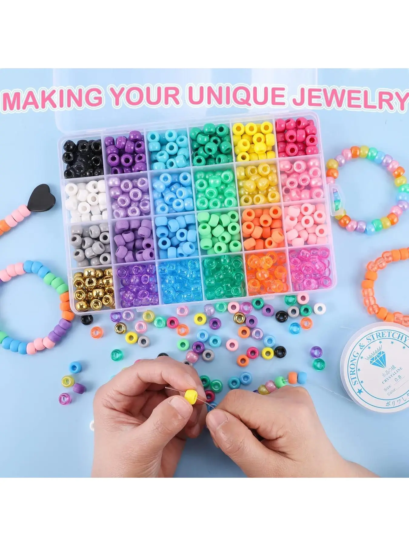 720pcs 24 Colors Pony Beads for Jewelry Making, Braided Hair Beads, Bracelet Kit, DIY Bracelets, Keychains, Fashion Gifts