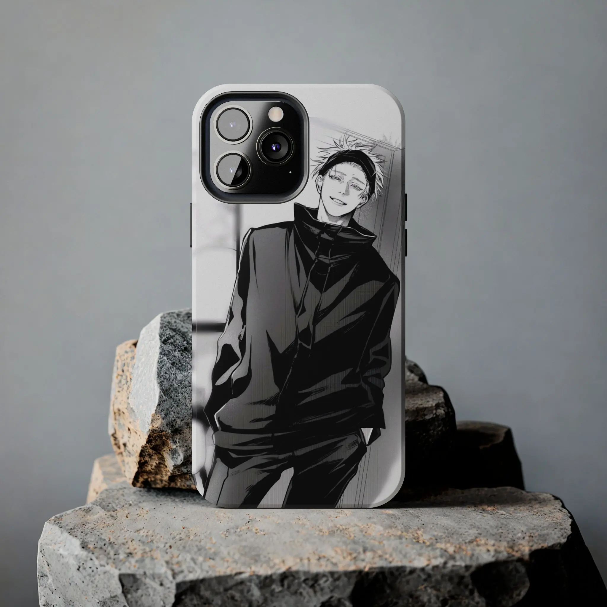 Channel the "Limitless" power of the world's strongest sorcerer with this Satoru Gojo themed case. Featuring a clean, high-contrast black-and-white manga illustration, this design captures Gojo in his iconic relaxed yet confident stance. The minimalist monochrome palette perfectly mirrors the sharp, modern aesthetic of Jujutsu Kaisen, making it a sleek and stylish accessory for any fan who prefers a sophisticated anime look.
