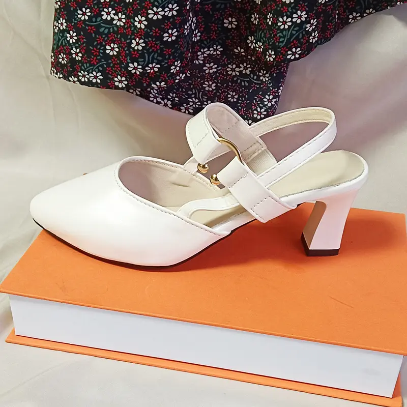 Spring Summer Womens Pointed Toe High Heels Thin Heel Closed Toe Sandals Backless Shallow Heel Single Shoes Fashion Versatile