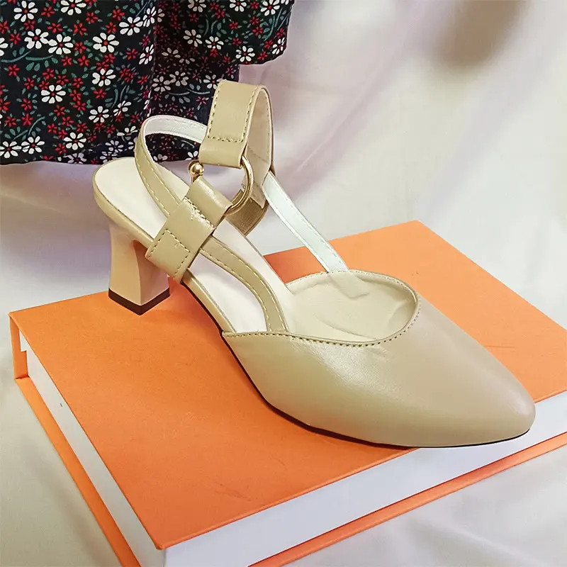 Spring Women Korean Style One Strap Closed Toe Sandals Chunky High Heels Pointed Toe Hollow Design Comfortable Feet