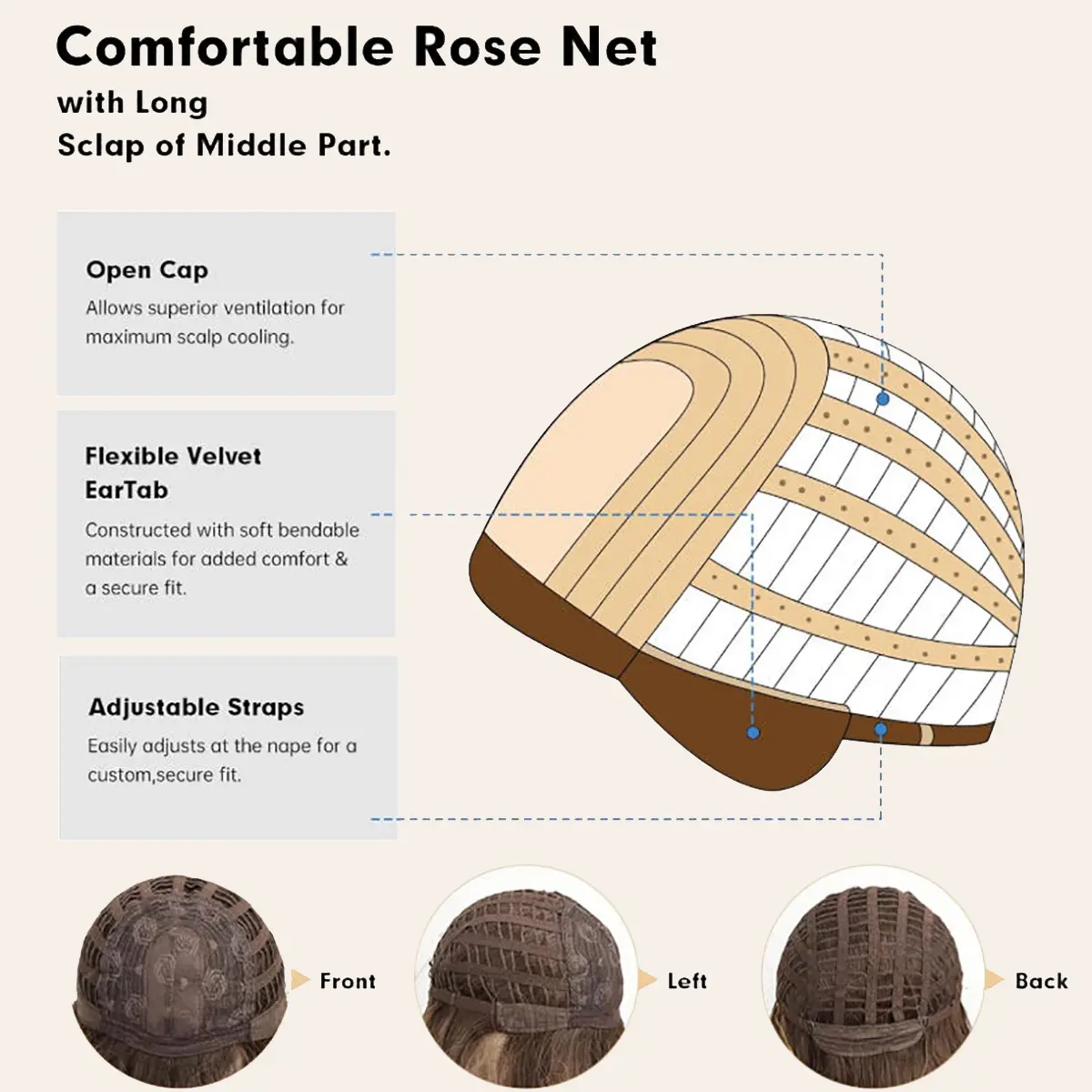 Ultra-natural hair texture with soft, shiny strands. Resistant to tangling and frizz, it feels like real human hair. The breathable inner cap ensures comfort for long-time wear. Glueless design makes it easy to wear, ideal for beginners. Styleable and easy to maintain, it matches various outfits.