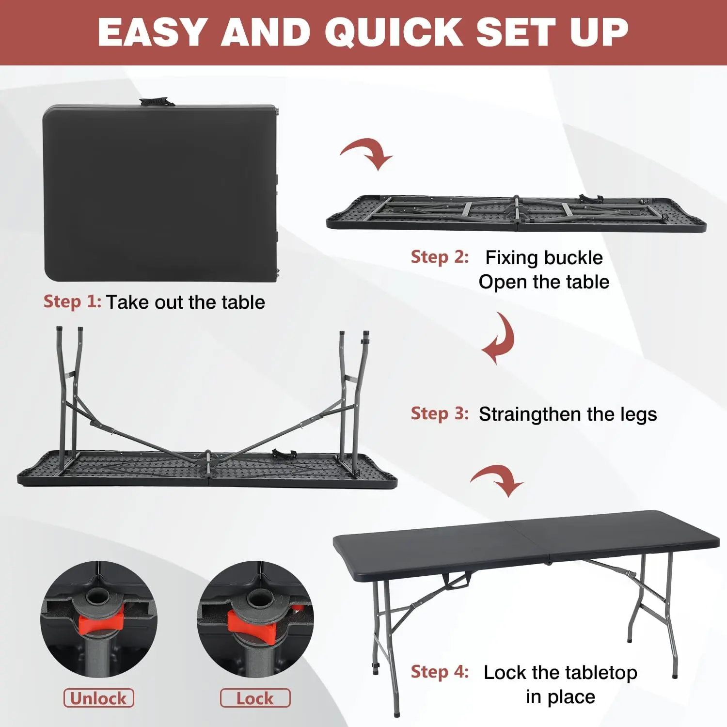 Folding Half Portable Foldable Table for Parties Backyard Events (White, 6 FT 70 * 29) (Black, 6 FT)