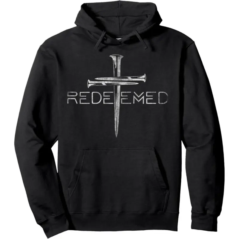 Men's Redeemed Christian Bible Verse Graphic Hoodie - Cotton Blend Black Long Sleeve Pullover Regular Fit | Soft & Breathable Fabric, Durable Print, Everyday Comfort, Machine Washable, religious graphic faith and spirituality Unisex Hoodies