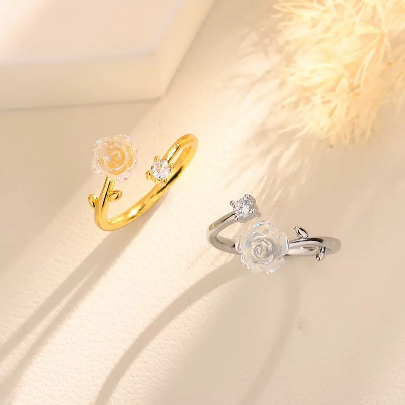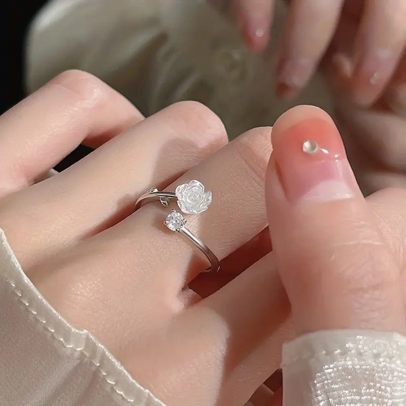 Super Gentle Camellia Ring for Women, Ins Niche Design, Cold Temperament, High-End Open Adjustable Ring for First Choice of Lovers, Girlfriends And