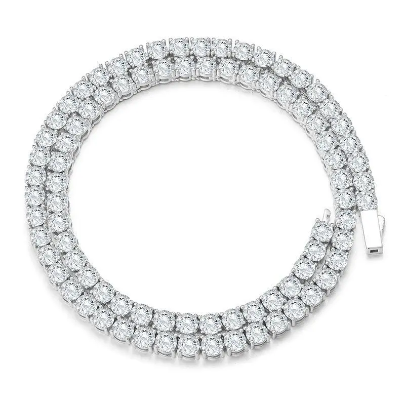 Hip Hop 925 Sterling Silver 3mm 4mm 5mm VVS Moissanite Diamond Necklace Moissanite Tennis Chain