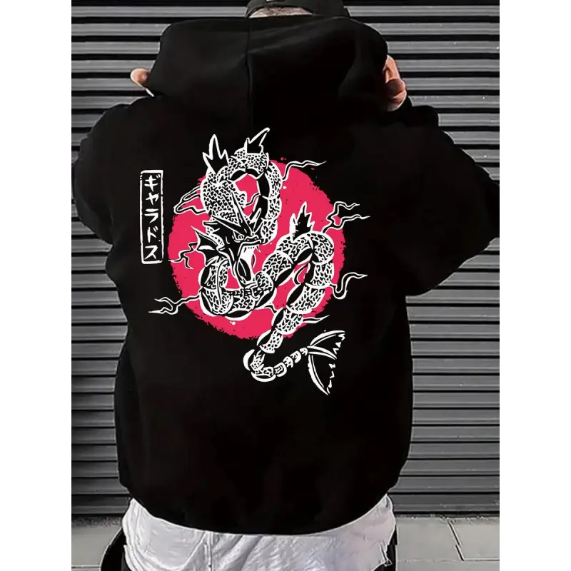Men's Dragon Print Pocket Drawstring Hoodie, Regular Fit Casual Drop Shoulder Long Sleeve Hooded Sweatshirt, Men's Spring & Fall Clothes Unisex Hoodies