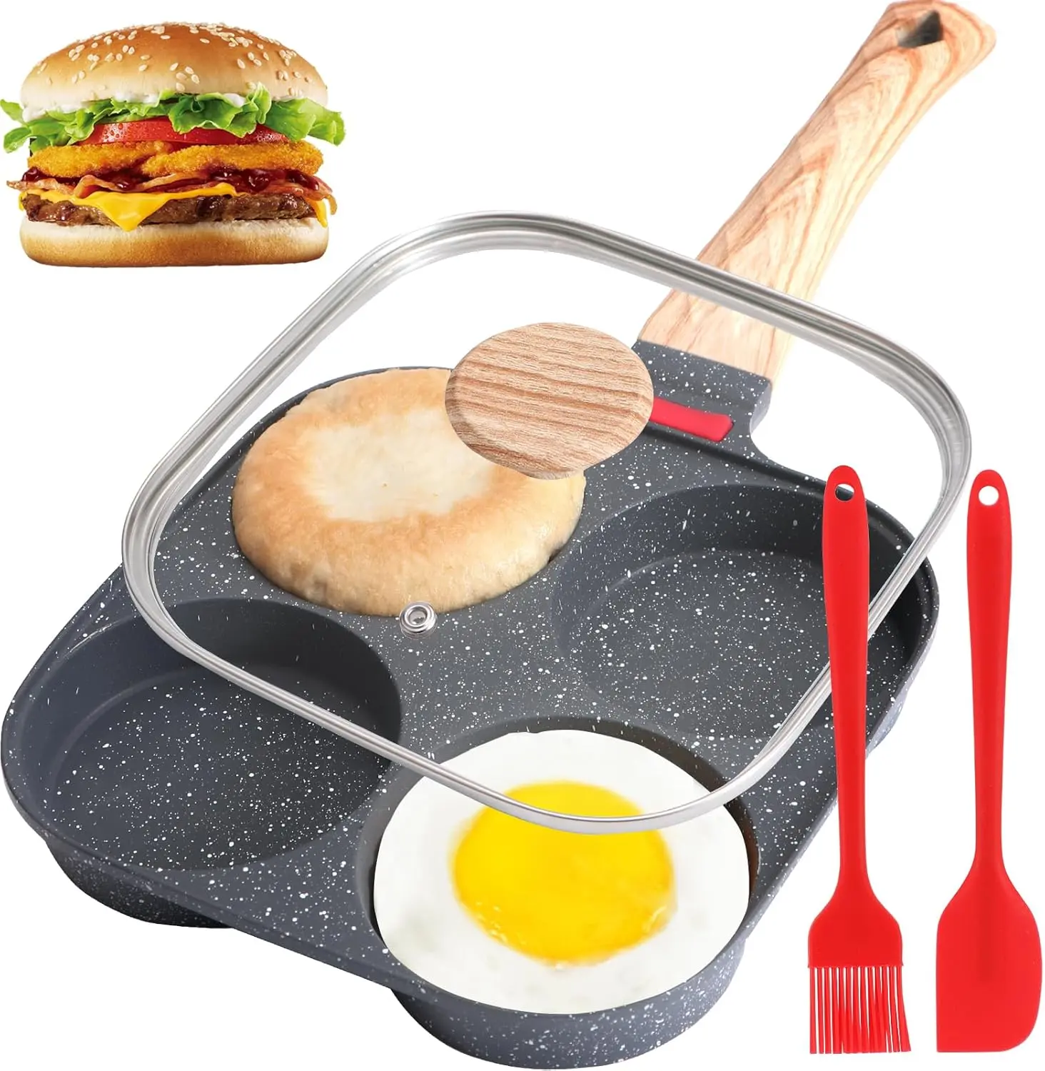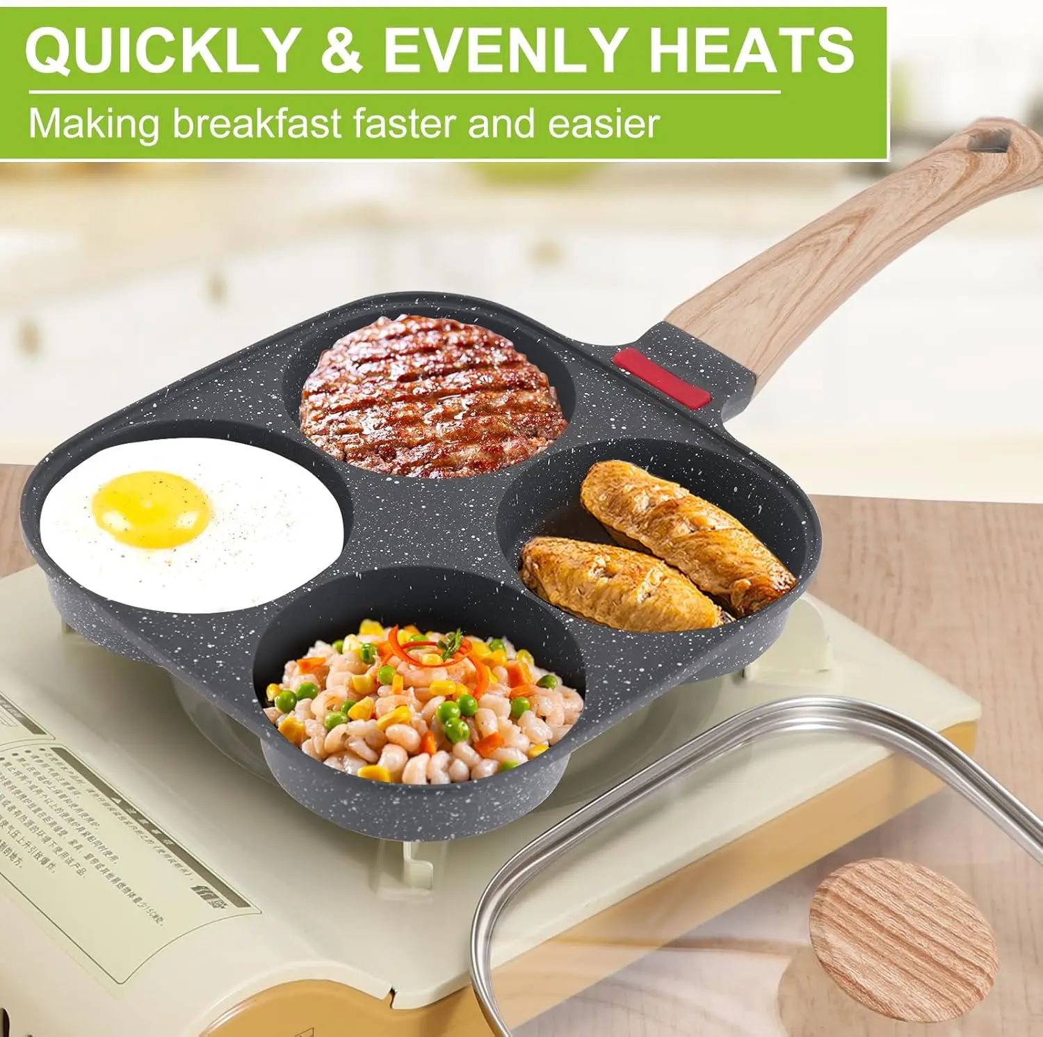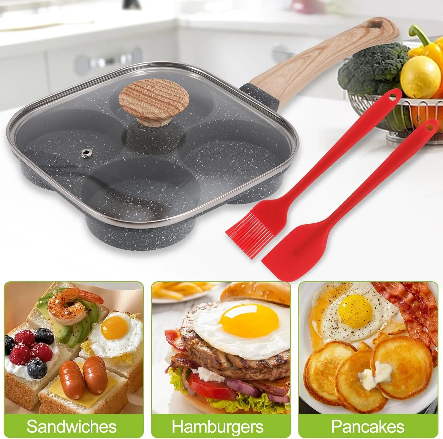 4-Cup Egg Pan, Premium Egg Pans Nonstick, Omelette Pan with Lid , Healthy Egg Frying Pan for Breakfast, Egg Sandwich, Hamburger, Pancake, Egg Skillet Suitable for Gas Stove & Induction Cookware