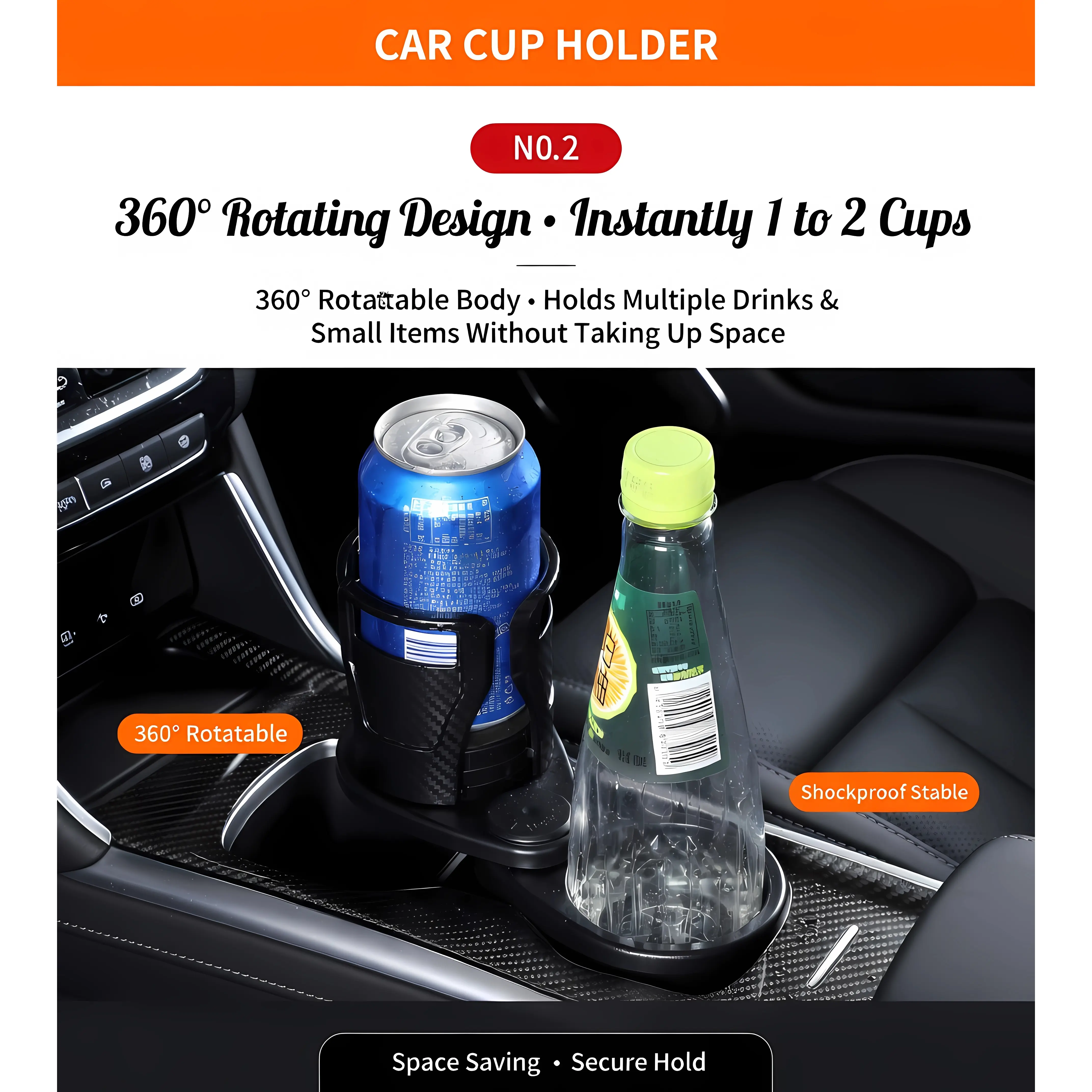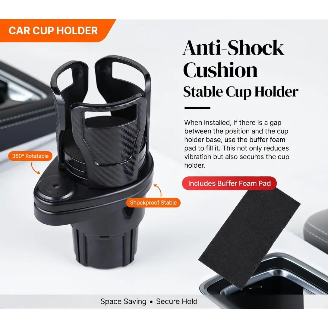 This360° Rotating 2-in-1 Car Cup Holderinstantly turns your single cup holder into a double threat - holding TWO drinks PLUS extra storage without stealing any space.Whether you’re rocking a giant tumbler and an energy drink, or a soda can and your AirPods, it’s got you covered.