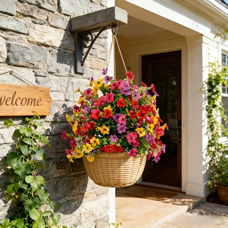 2 Set Artificial Outdoor Flowers Artificial Hanging Flowers Plant UV-resistant Windproof Waterproof Faux flowers with 2 Hanging Basket 2 Hanging Planters 40 Flowers for Spring Summer Porch Home Outdoor Decoration Garden Pot Front Courtyard Patio Lawn