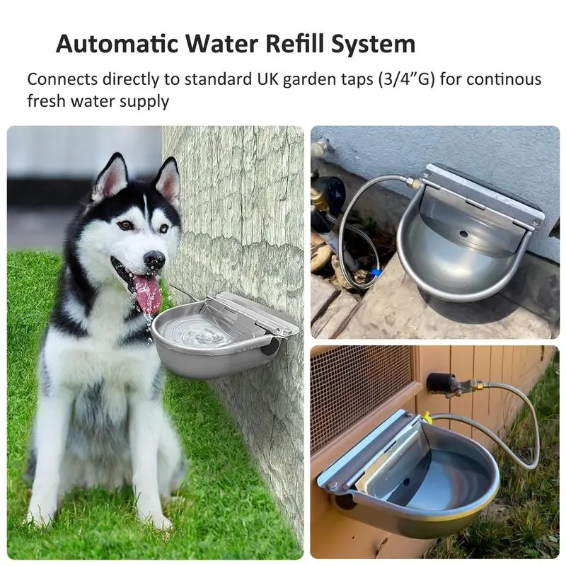 Automatic Dog Water Bowl Dispenser Large Breed Outdoor Stainless Steel Pet Waterer with Float Valve Auto Fill Dog Waterer for Large Dogs Cats Chicken Livestock