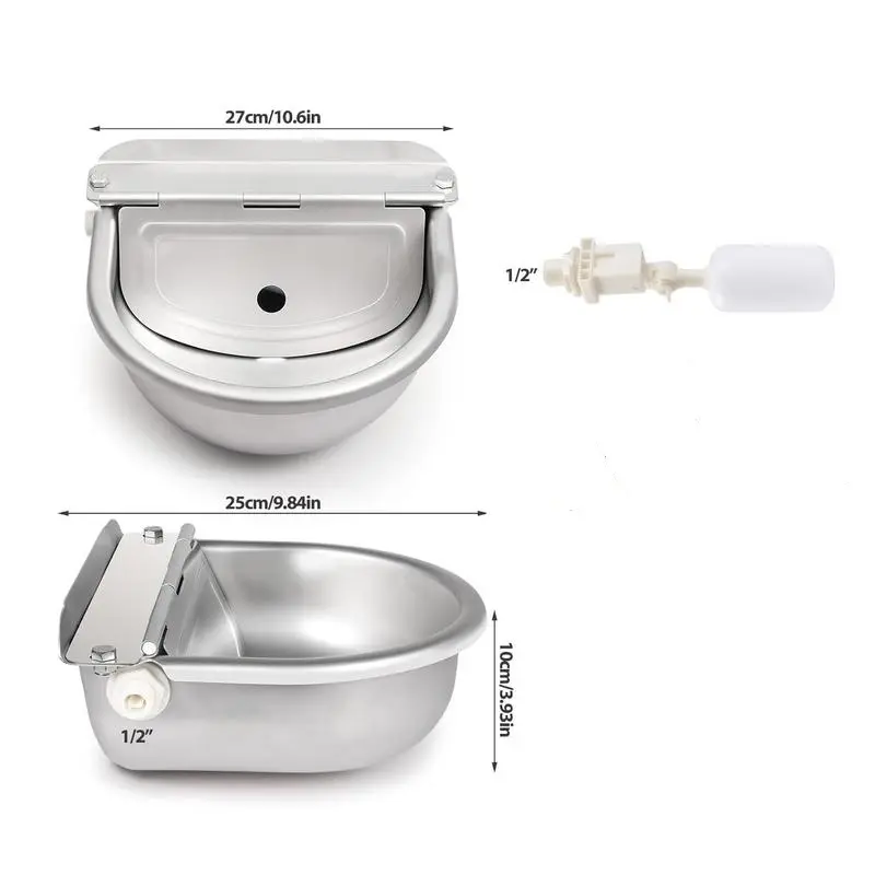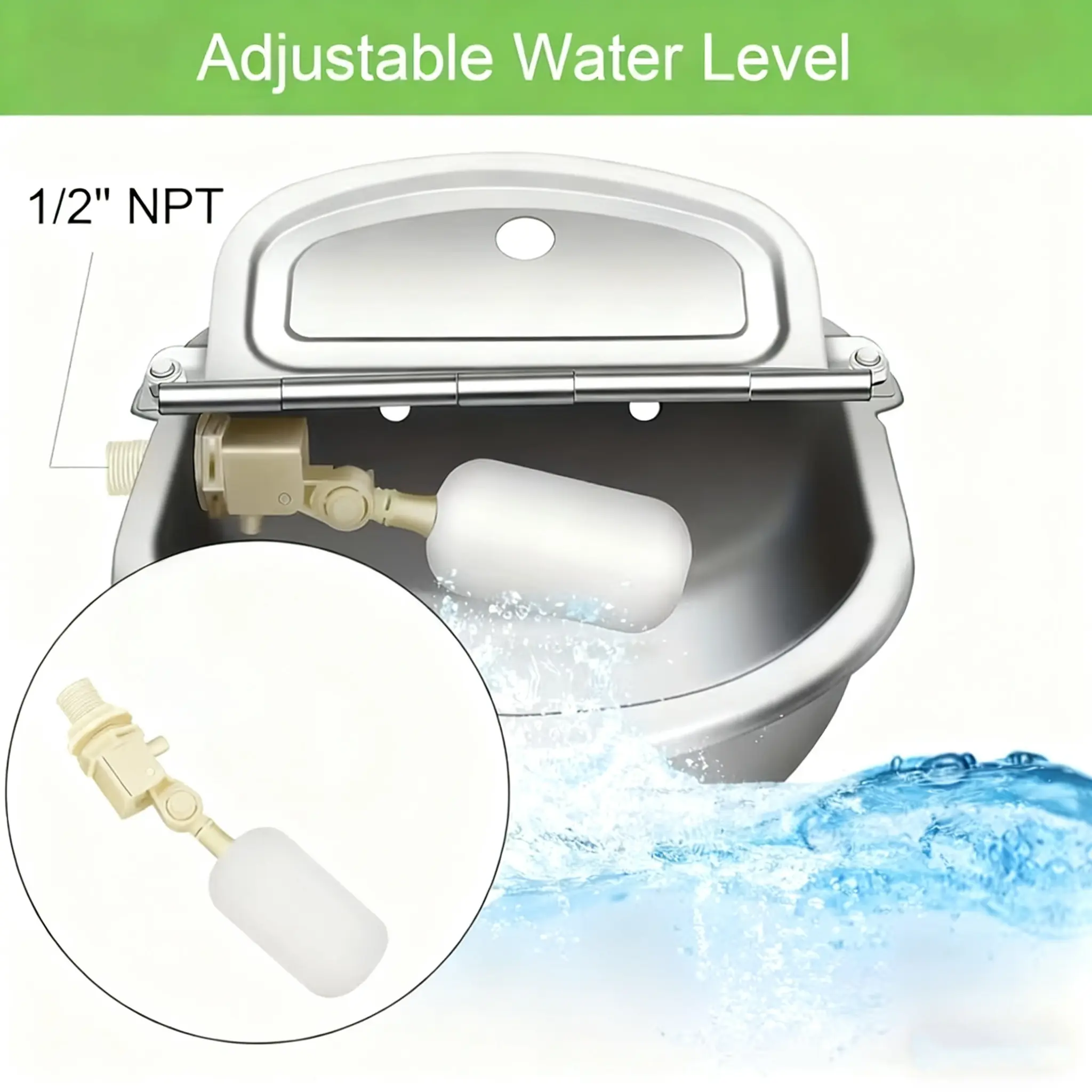 Stainless Steel Automatic Animal Water Bowl Dog Cat Poultry Water Dispenser with Drain Hole Float Valve Auto Water Level Control Hose Not Included