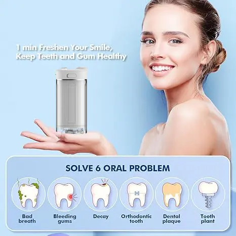 Lightweight and portable, this ultra-compact model is designed for frequent travelers: The wireless travel water flosser features a compact, space-saving design that fits easily in the palm of your hand, a toiletry bag, or a travel bag. Perfect for air travel, road trips, camping, or daily commutes—this slim, lightweight water flosser is the ideal choice for on-the-go oral care, offering convenient cleaning and quick refilling: This modern oral irrigator, designed specifically for travel, helps you say goodbye to mineral buildup! It’s easy to clean, dry, and refill. Say goodbye to the hassles of traditional, non-removable water tanks. The water flosser is more convenient to use, making it particularly suitable for oral care during flights, road trips, lunch breaks, or after daily meals.