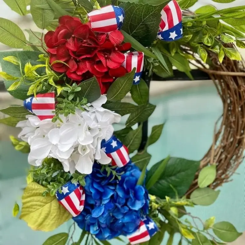 【Patriotic Theme】: Features red, white, blue hydrangeas and an American flag design for a festive look.