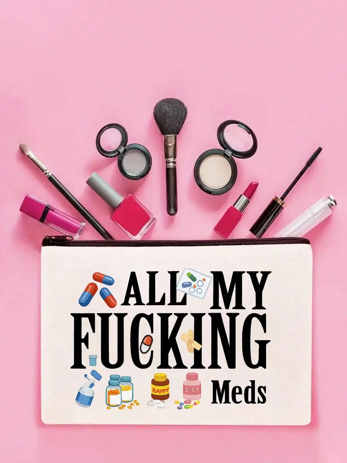 Humorous Canvas Pill Organizer Bag, Zipper Closure, Polyester Material, Reusable Travel Medicine Pouch, Perfect Gift for Women, Mom, Sister, Daughter, Friend