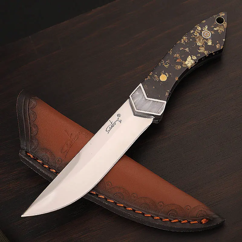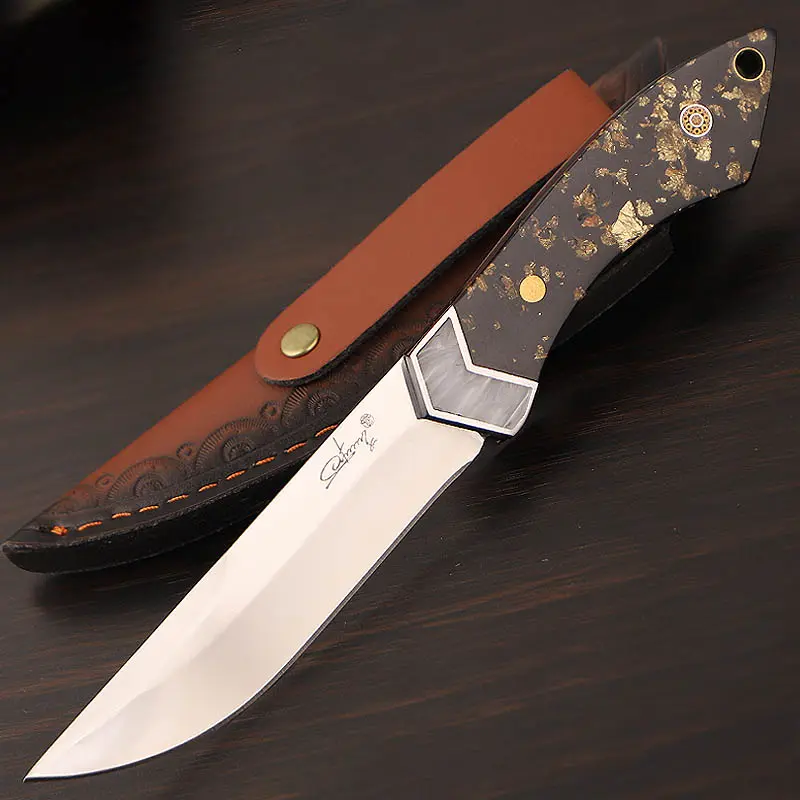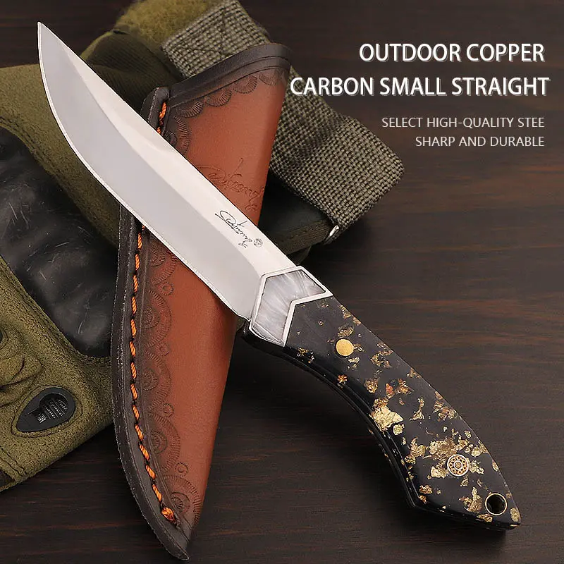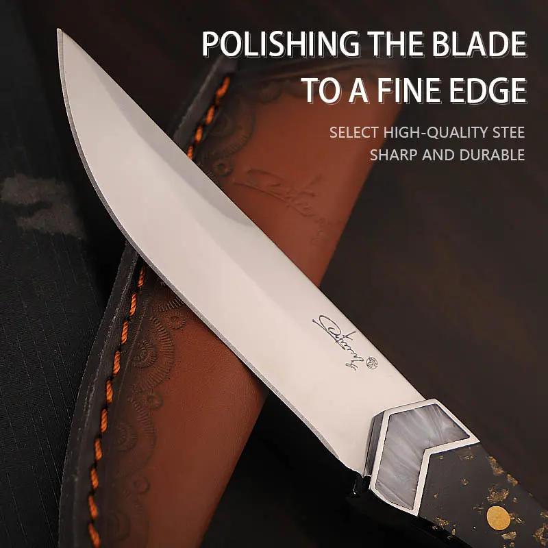 Multifunctional camping knife with a beautiful, comfortable, and non-slip handle and sheath, suitable for peeling in the home kitchen, outdoor ping, barbecues, and cooking.