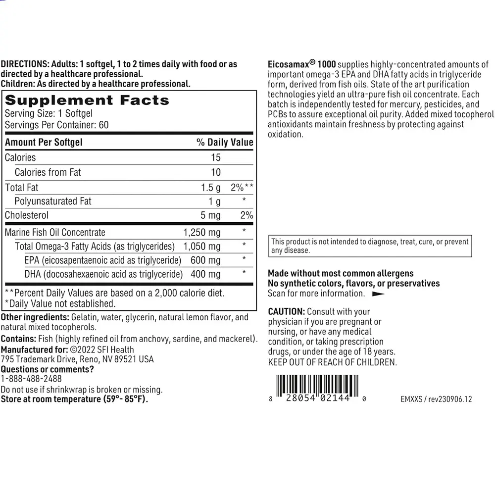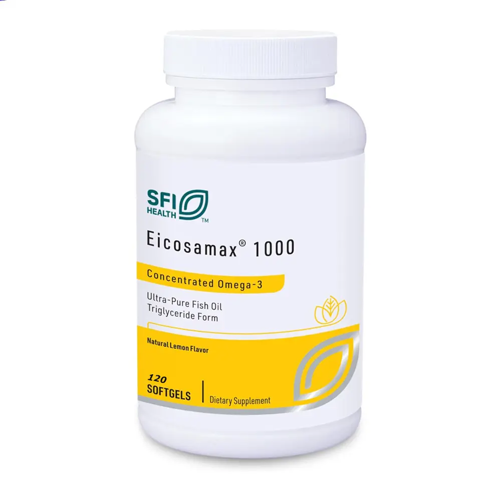 Klaire Labs EicosaMax 1000 TG is an ultra-pure omega-3 fish oil supplement designed to deliver high-potency EPA and DHA in a triglyceride (TG) form for enhanced absorption. This advanced formula supports overall daily wellness as part of a balanced nutritional routine.
