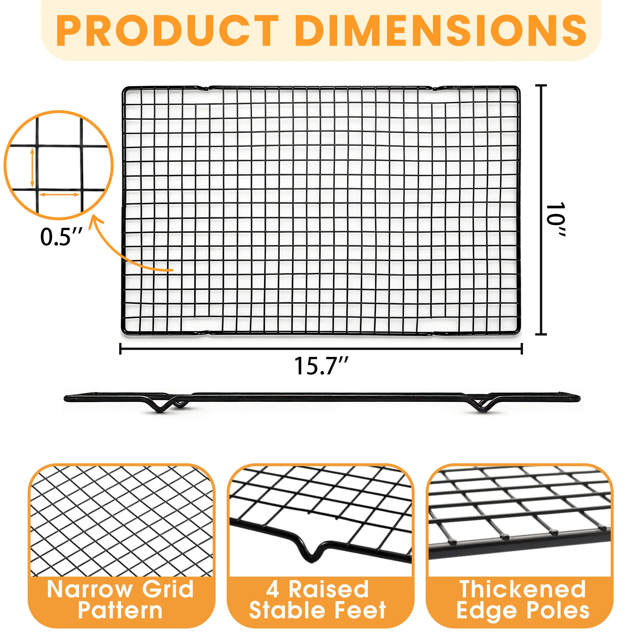 Cooling Rack for Baking 2-Pack, 10" x 15" Grid Wire Rack, Baking Racks for Oven Cooking, Baking, Grilling, Roasting, Black