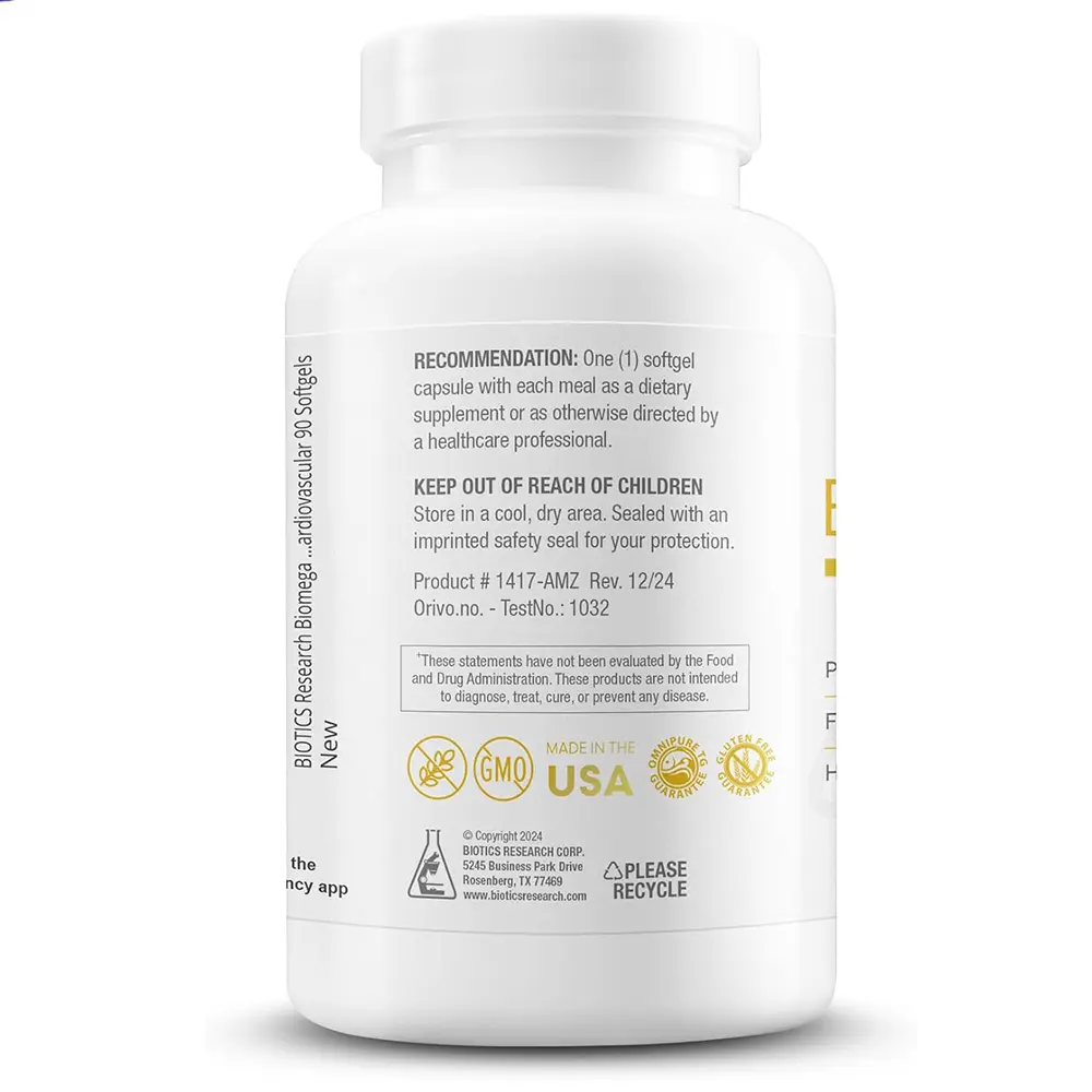 Biotics Research BioMega-1000 is a highly concentrated omega-3 fish oil supplement delivering a precise combination of EPA and DHA fatty acids. Each softgel provides 529mg EPA and 353mg DHA, formulated for consistent daily nutritional intake.