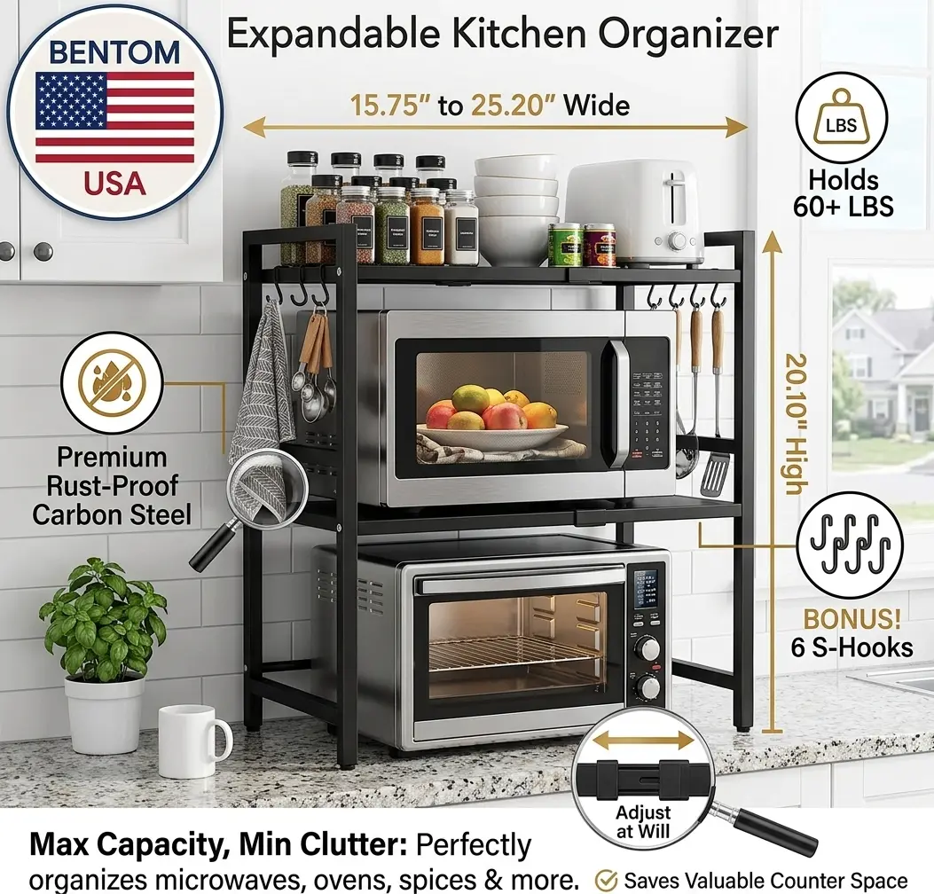 ·️ Fully Adjustable: Slides from 15.7" to 25.2" in seconds. Whether you have a tiny studio or a massive kitchen, it fits PERFECTLY.