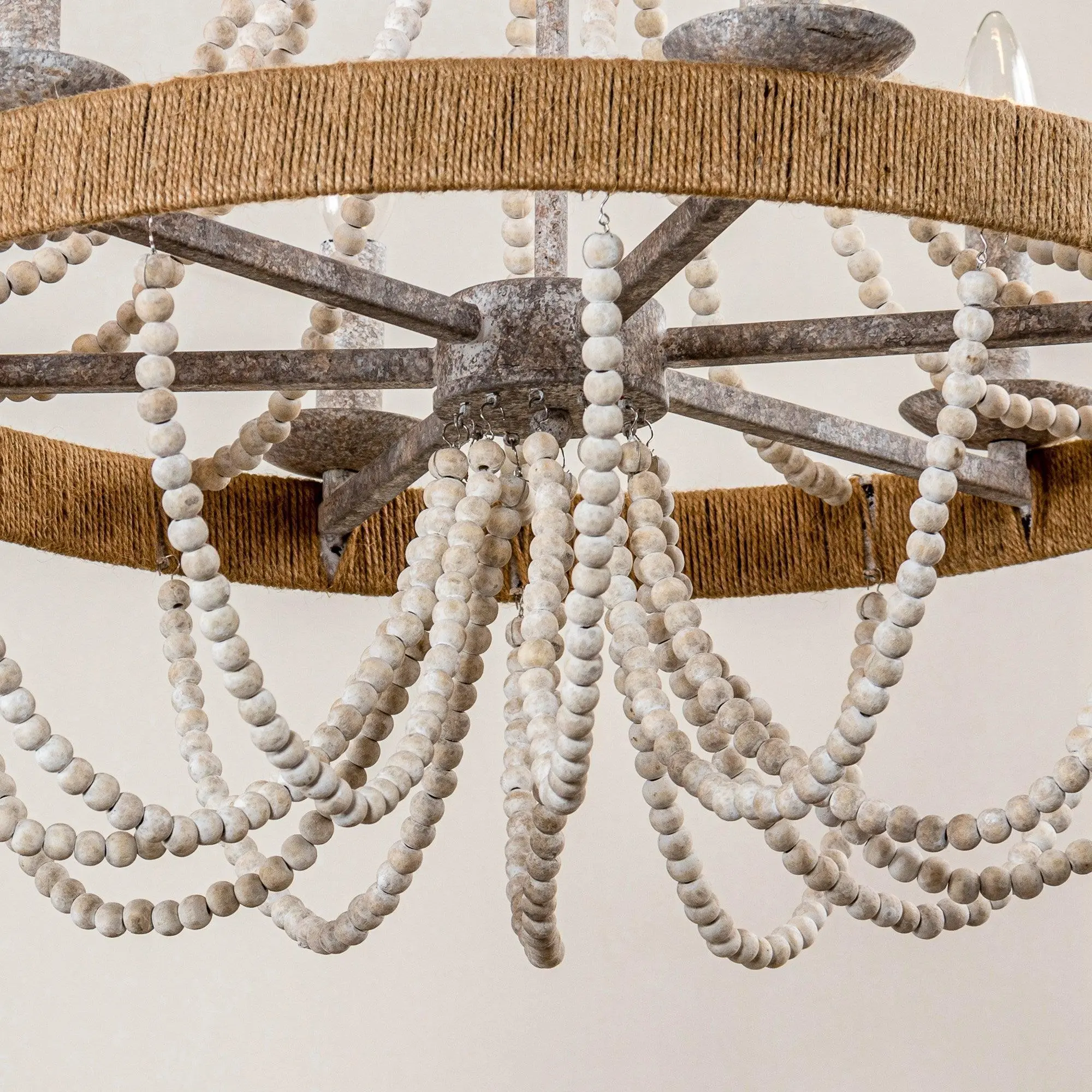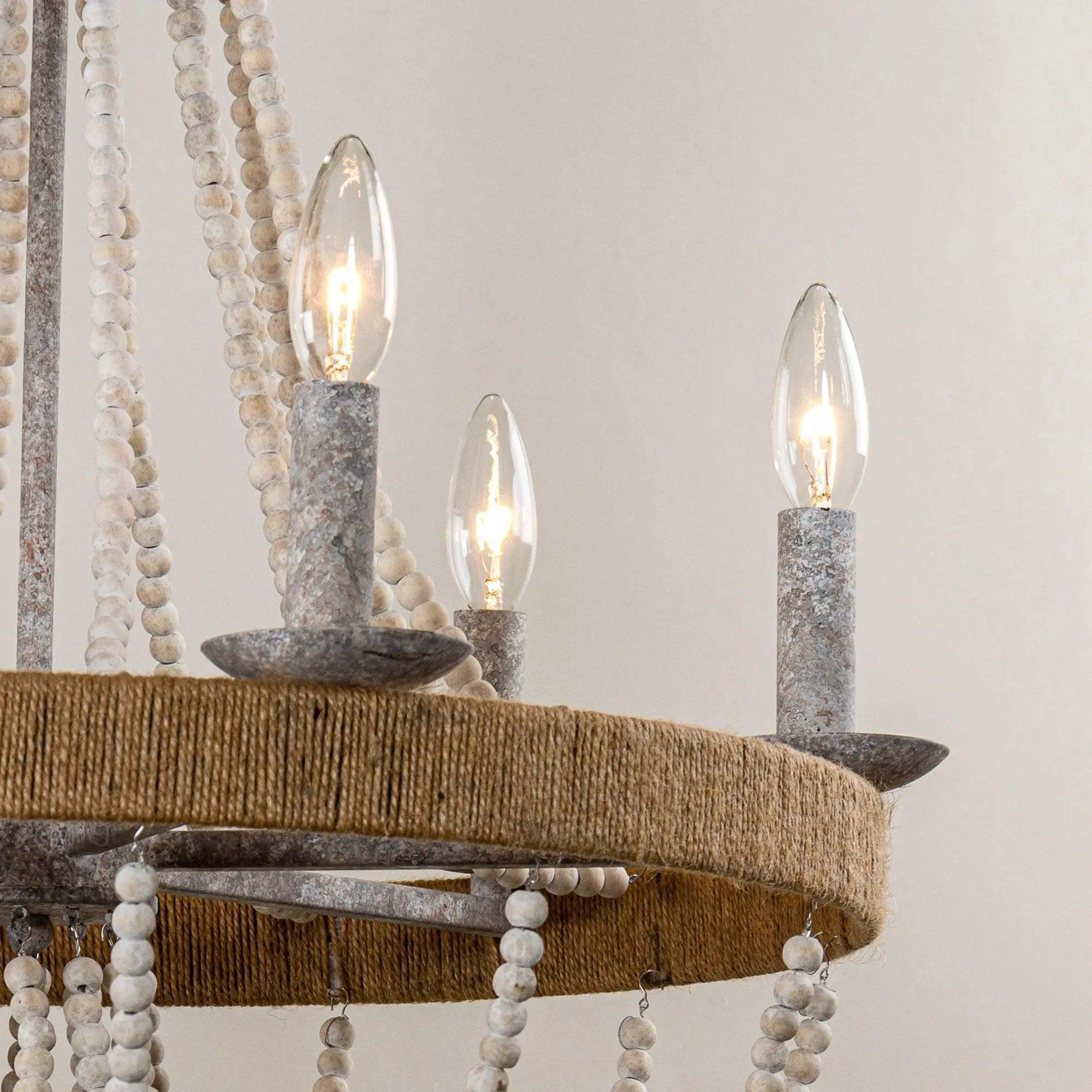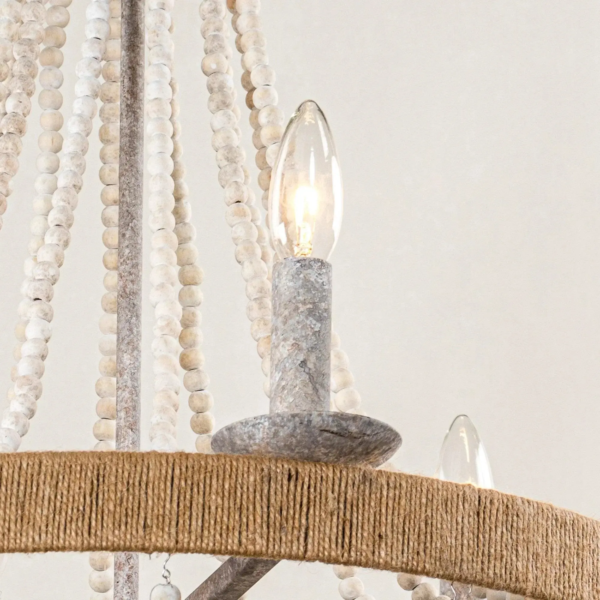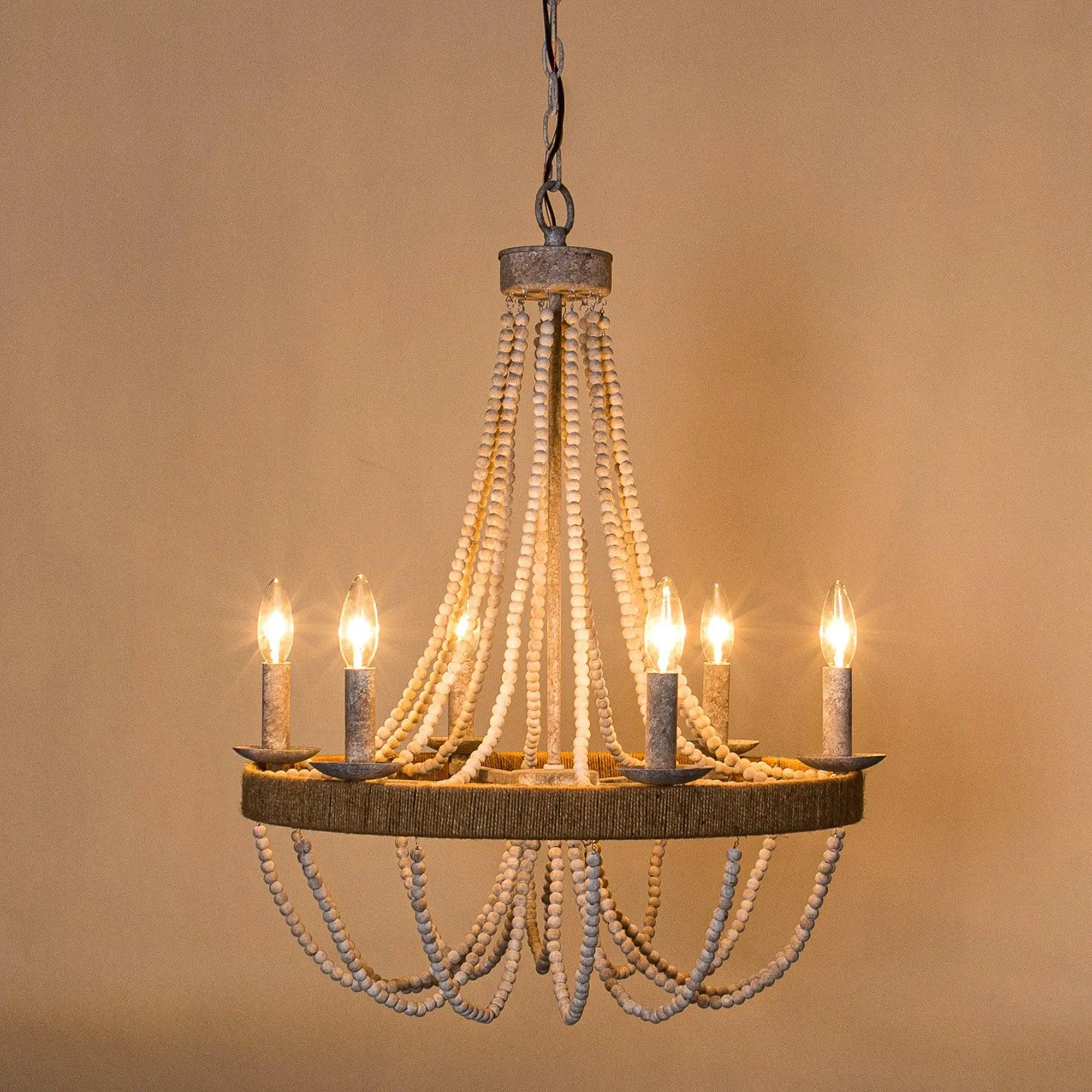 Chokio 6-Light Wood Bead Chandelier Handmade Farmhouse Pendant for Dining Room Living Room
