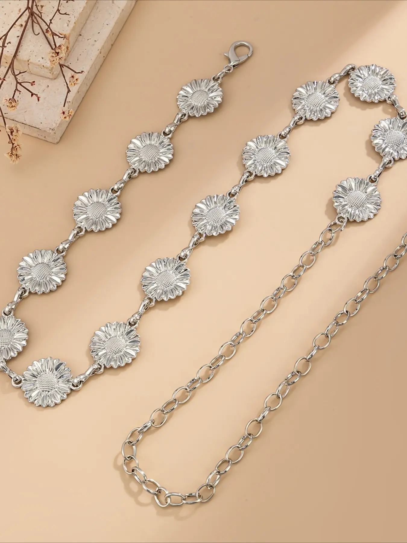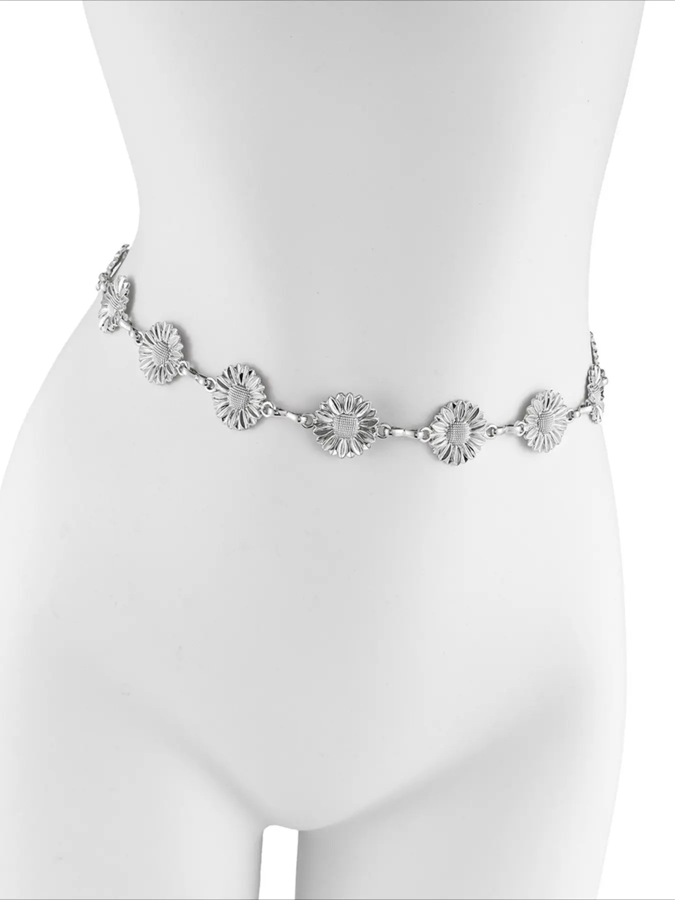 CYL&RY Daisy Flower Waist Chain for Women, Layered Belly Chain with 3D Daisy Charms, Perfect for Beach Vacations, 90s Themed Parties, Retro Streetwear Styling, Music Festivals, Rave Outfits, Club Nights Summer Street Style, Cute Floral Body Jewelry