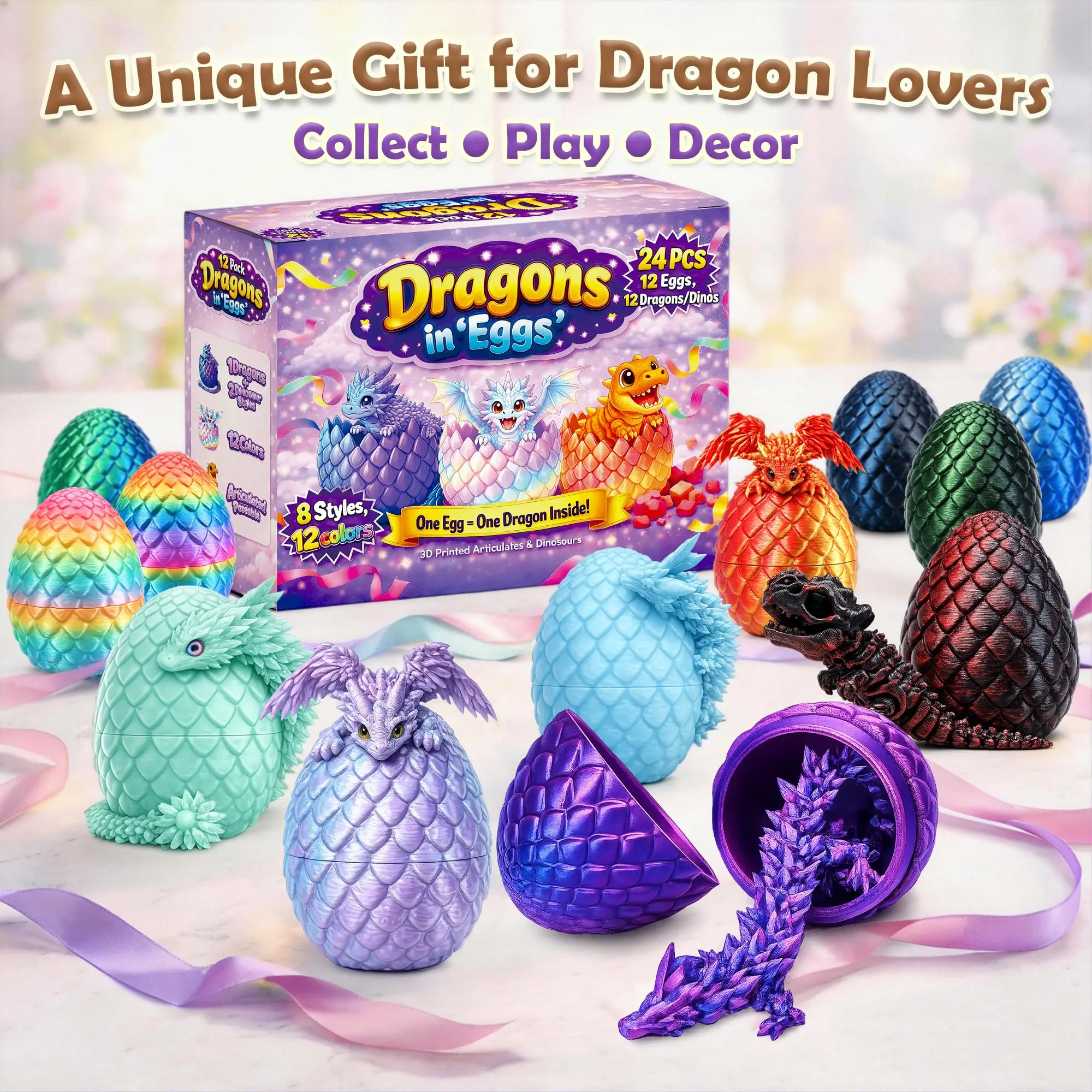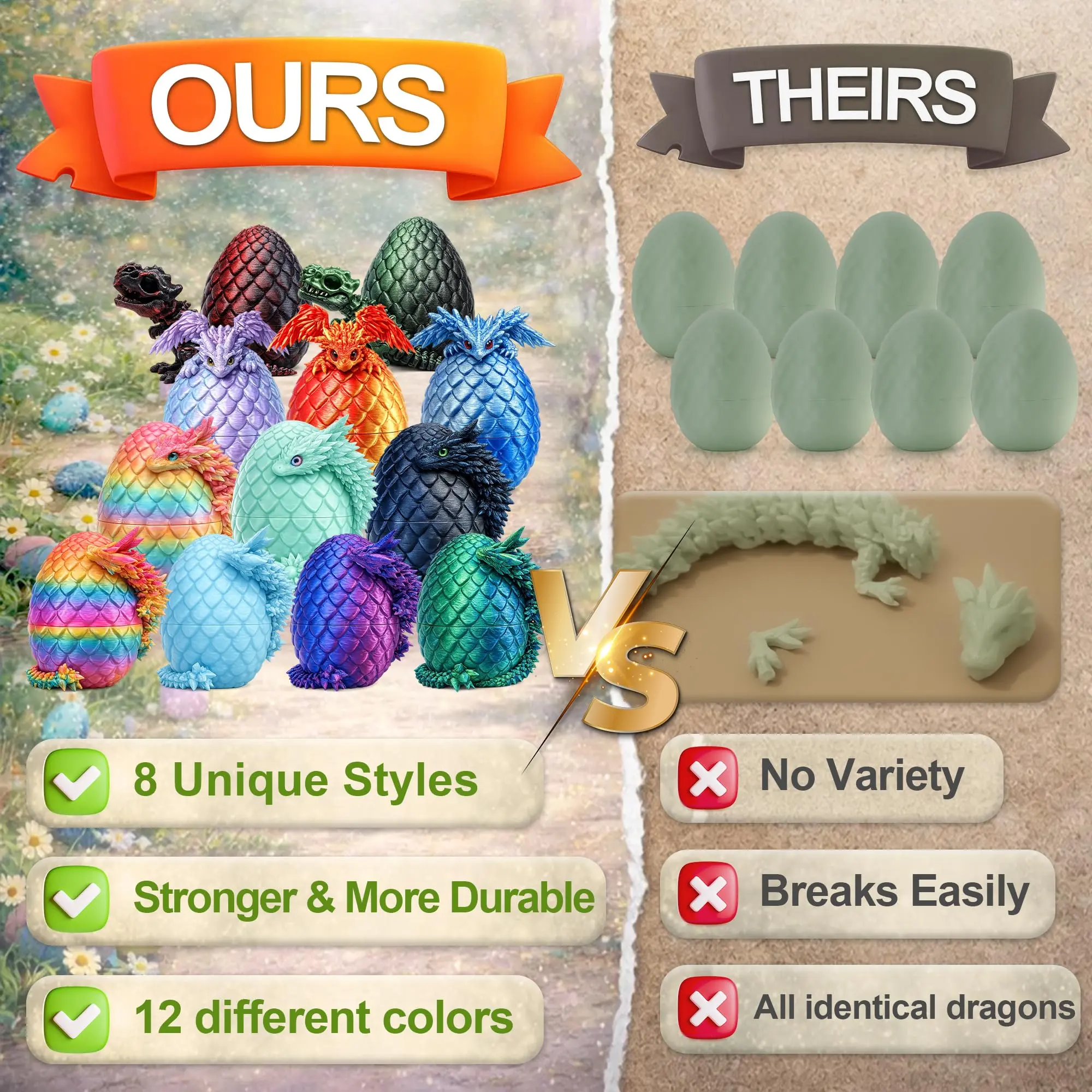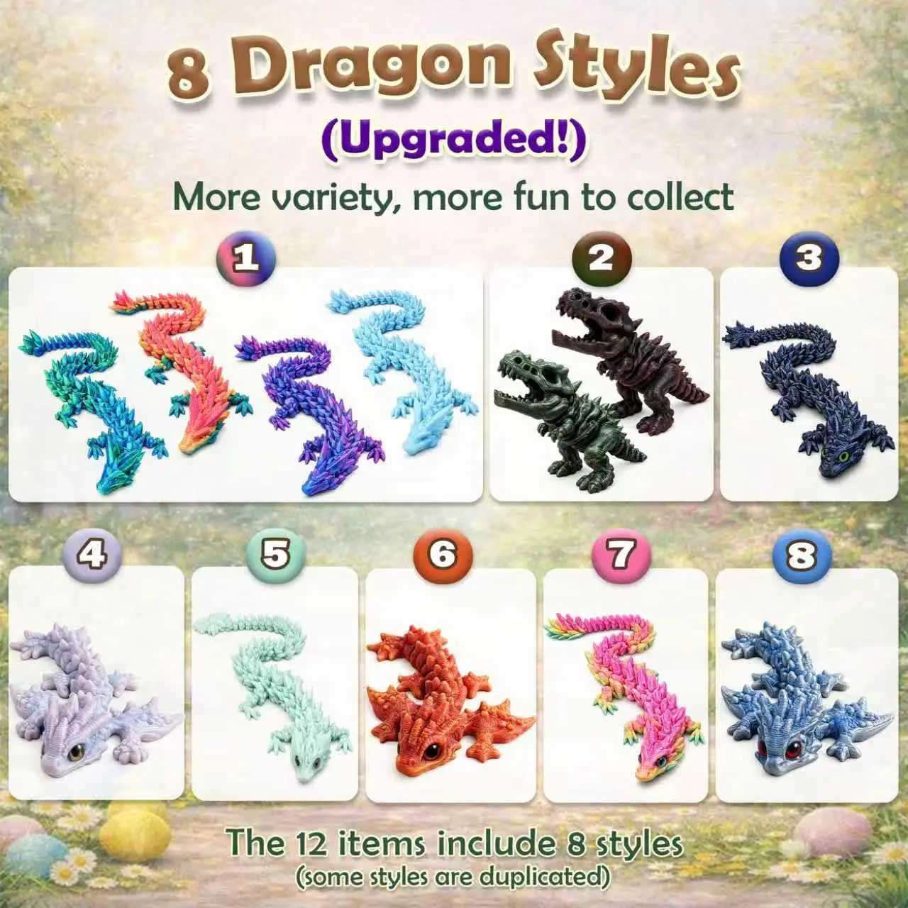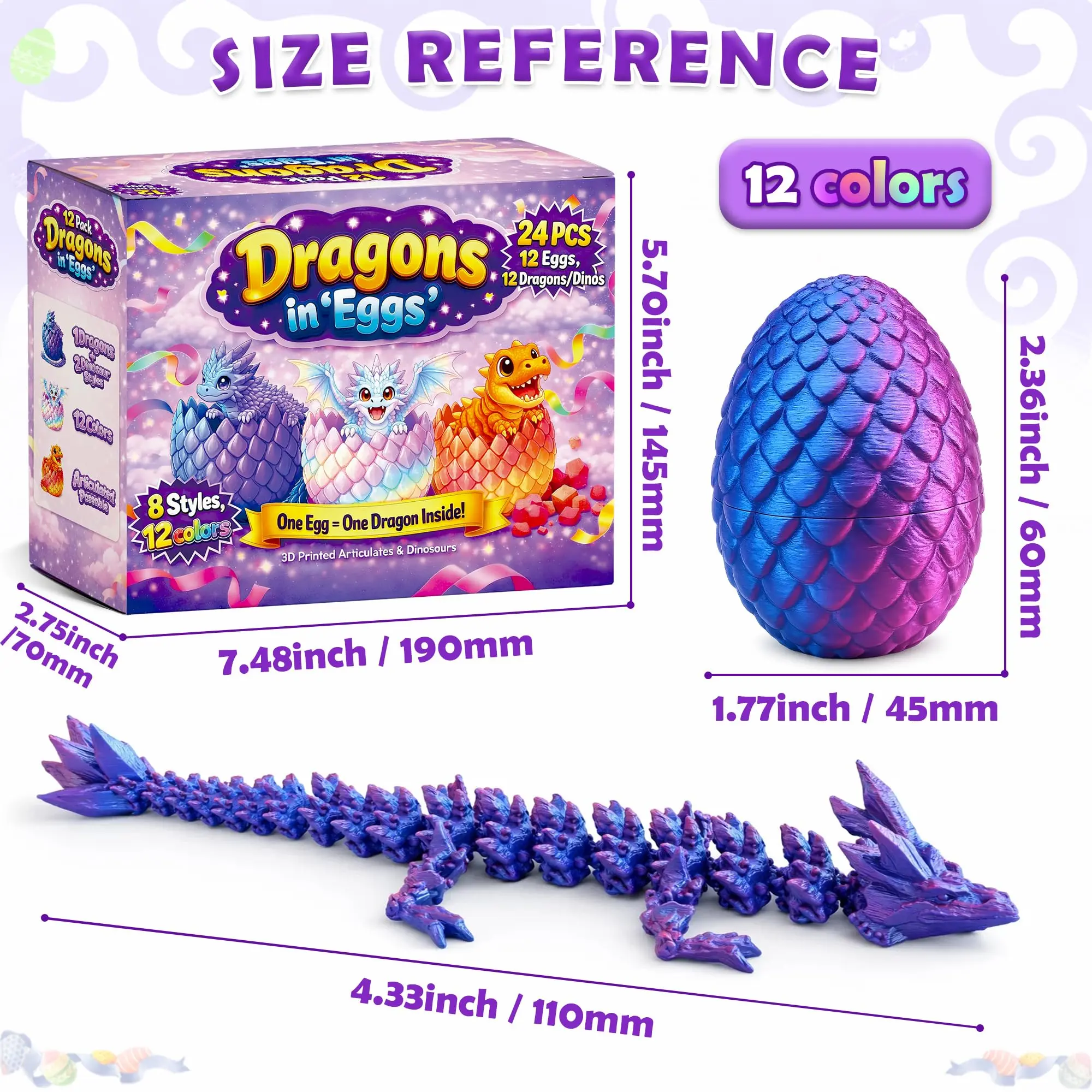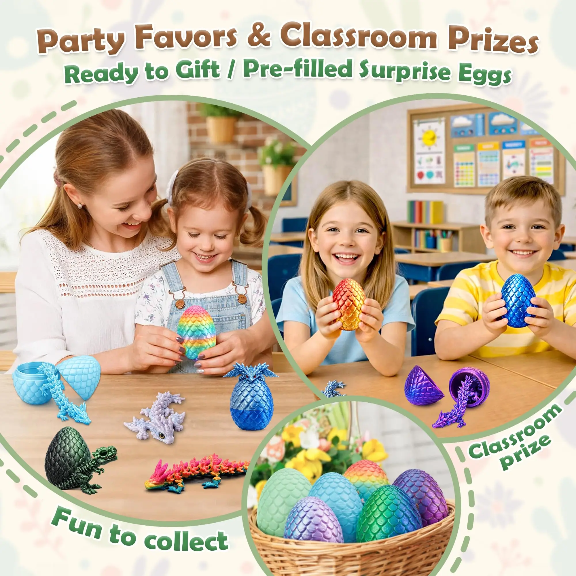 ·Unique 3D Printed Mystery Crystal Dragon Eggs: Each plastic egg comes prefilled with a mini 3D printed dragon, featuring detailed scales and articulated design. Each dragon is upgraded craftsmanship with durable joints, perfect for kids who love dragons and fantasy creatures