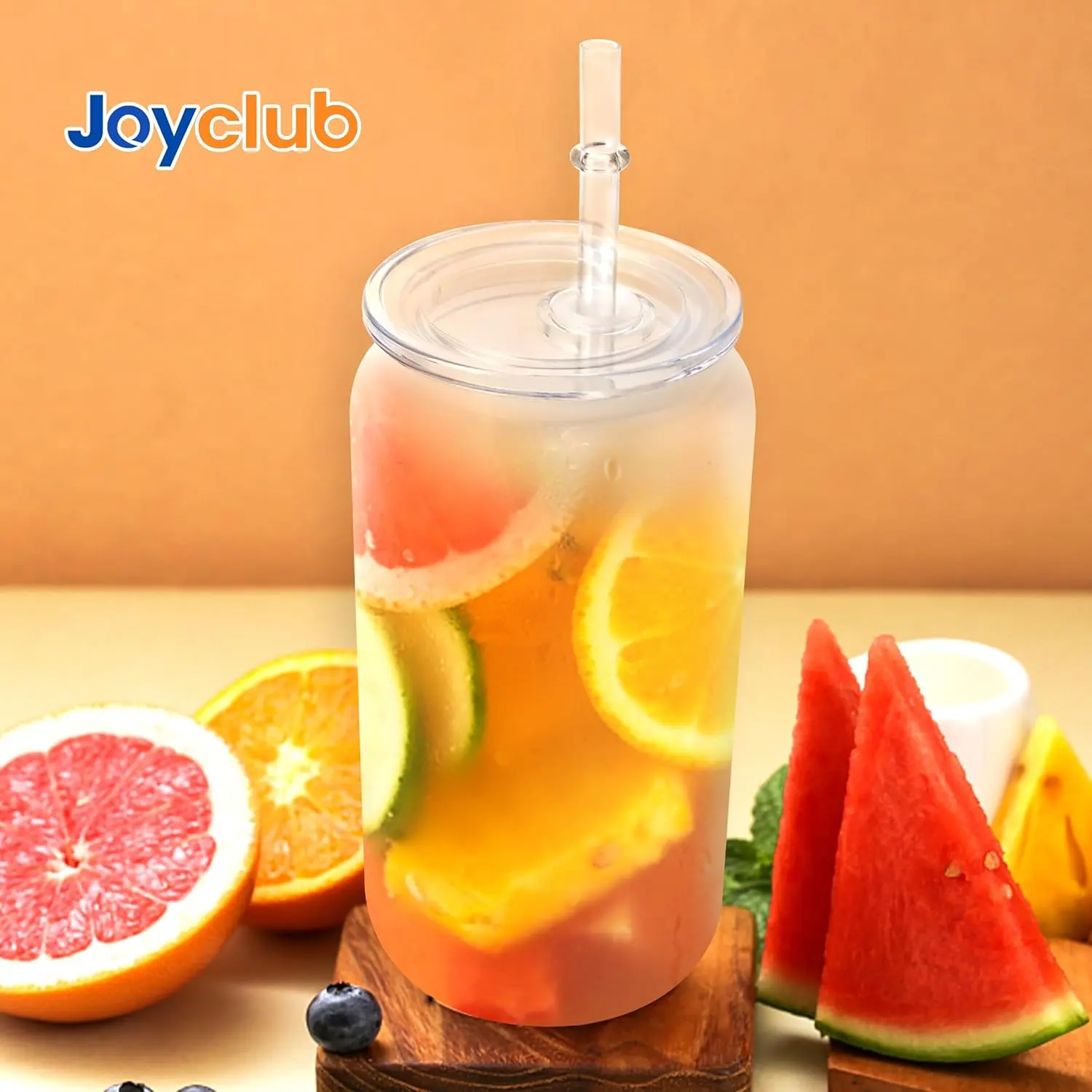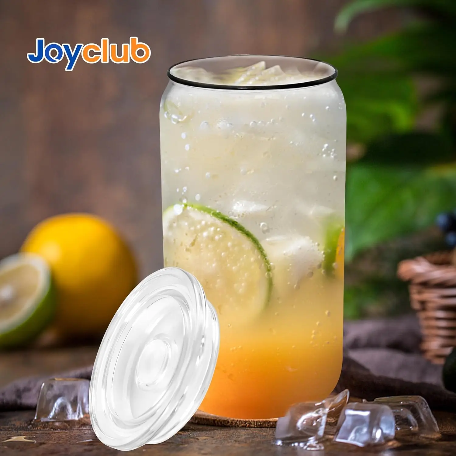 Joyclub 4 Pack Acrylic Lids for 16 oz Glass Cups with Bamboo Lids and Straws Reusable Iced Coffee Cup Beer Can Drinking Glasses for Smoothie Whiskey Boba Soda Tea Gift (Clear)