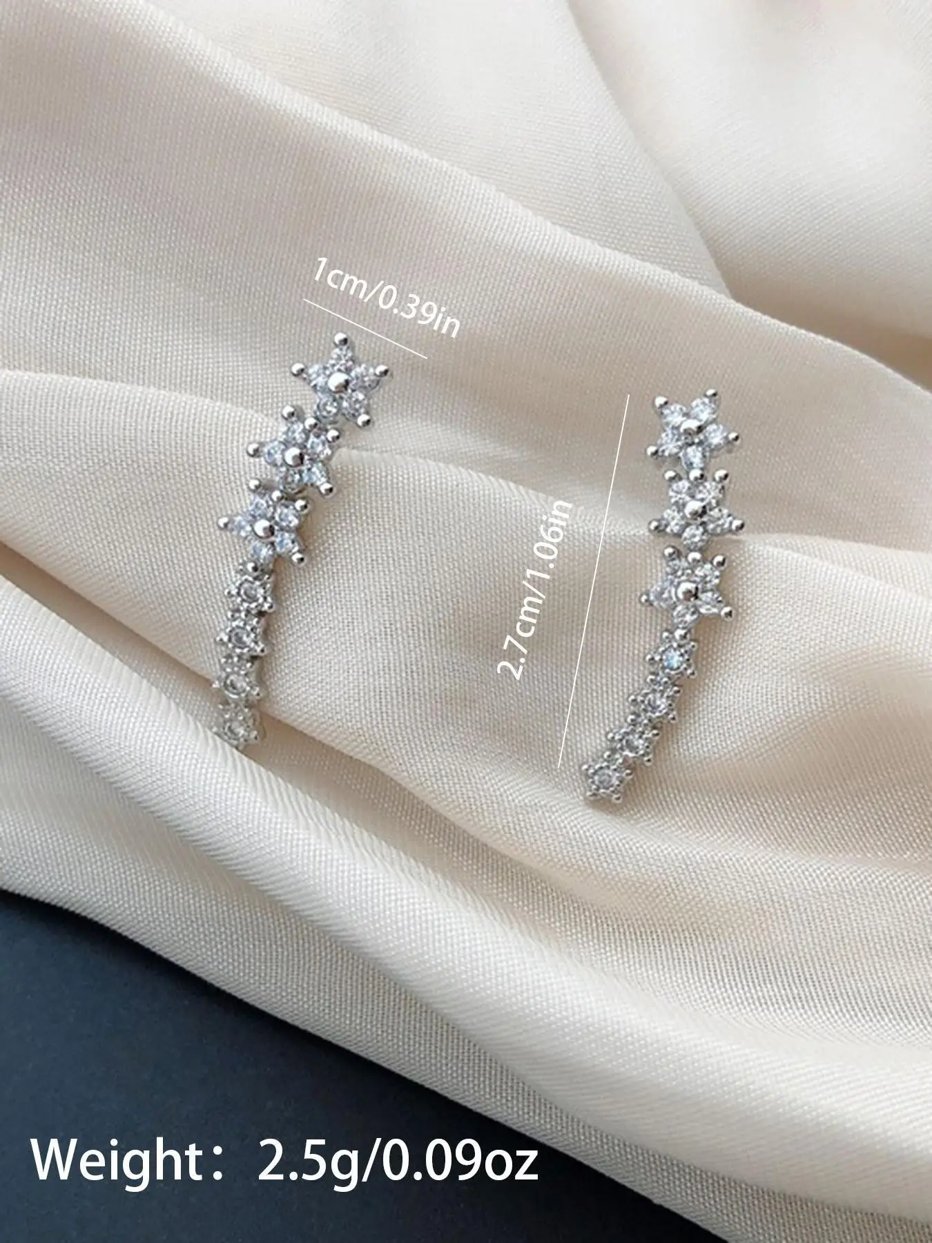 Elegant Starburst Earrings, Full Cz Rhinestone Sparkle, Caterpillar Design, Skin-Friendly, Lightweight, Perfect for Daily Wear, Office, Dates, Special Occasions