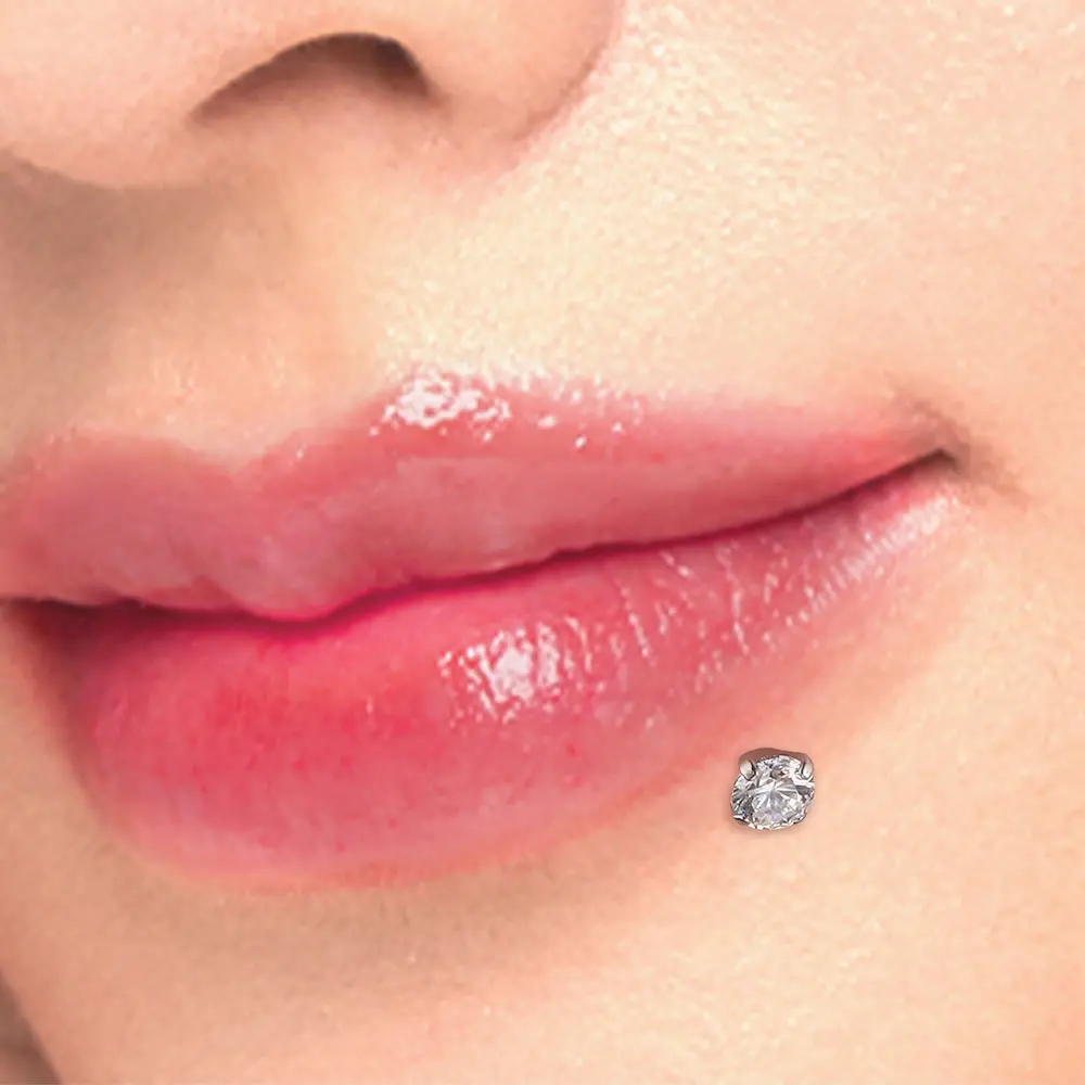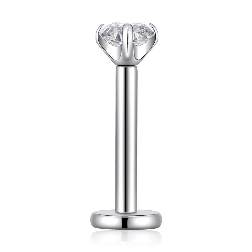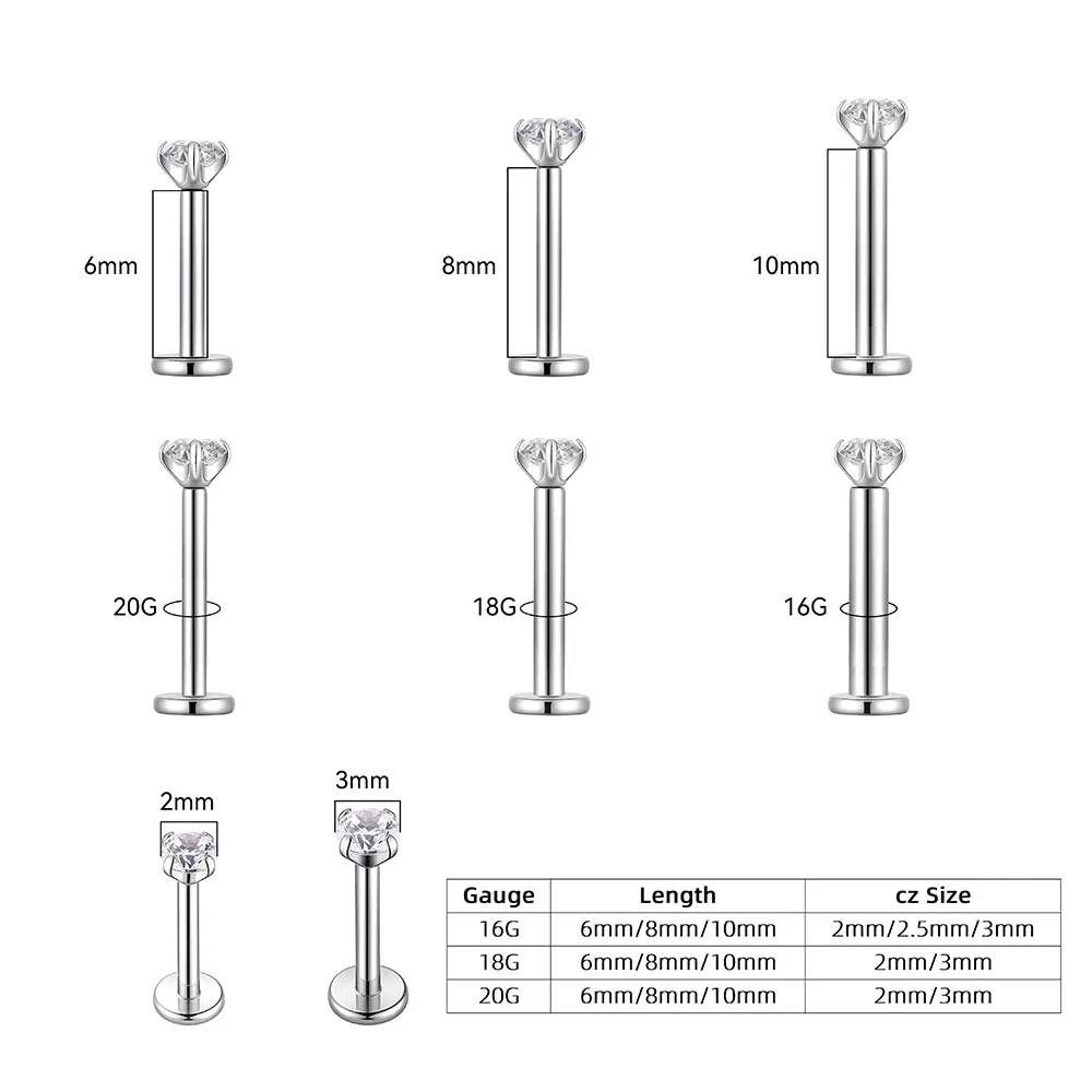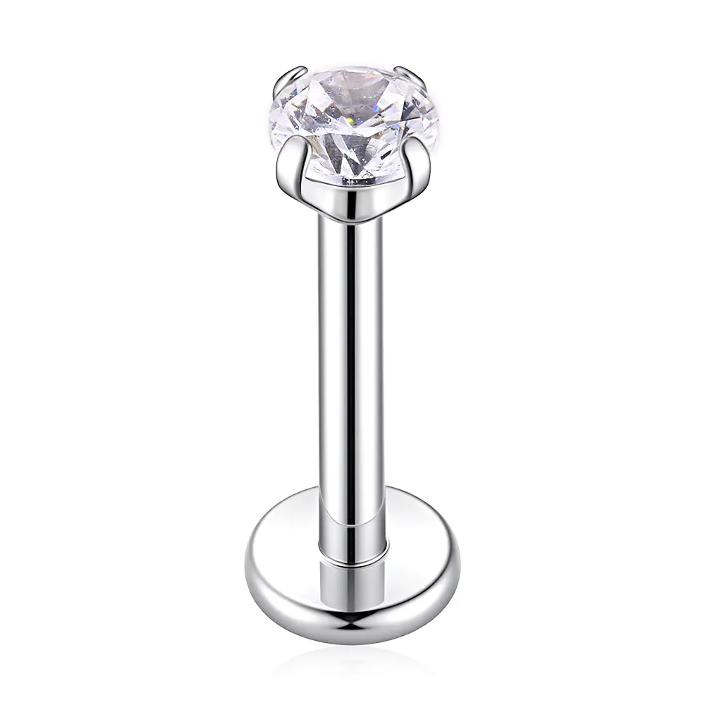 BODY FREEDOM Titanium Flat Back Stud Push PinLabret Earring with CZ for Lip Nose Helix & Cartilage Piercing Jewelry High-Quality Piercing Jewelry