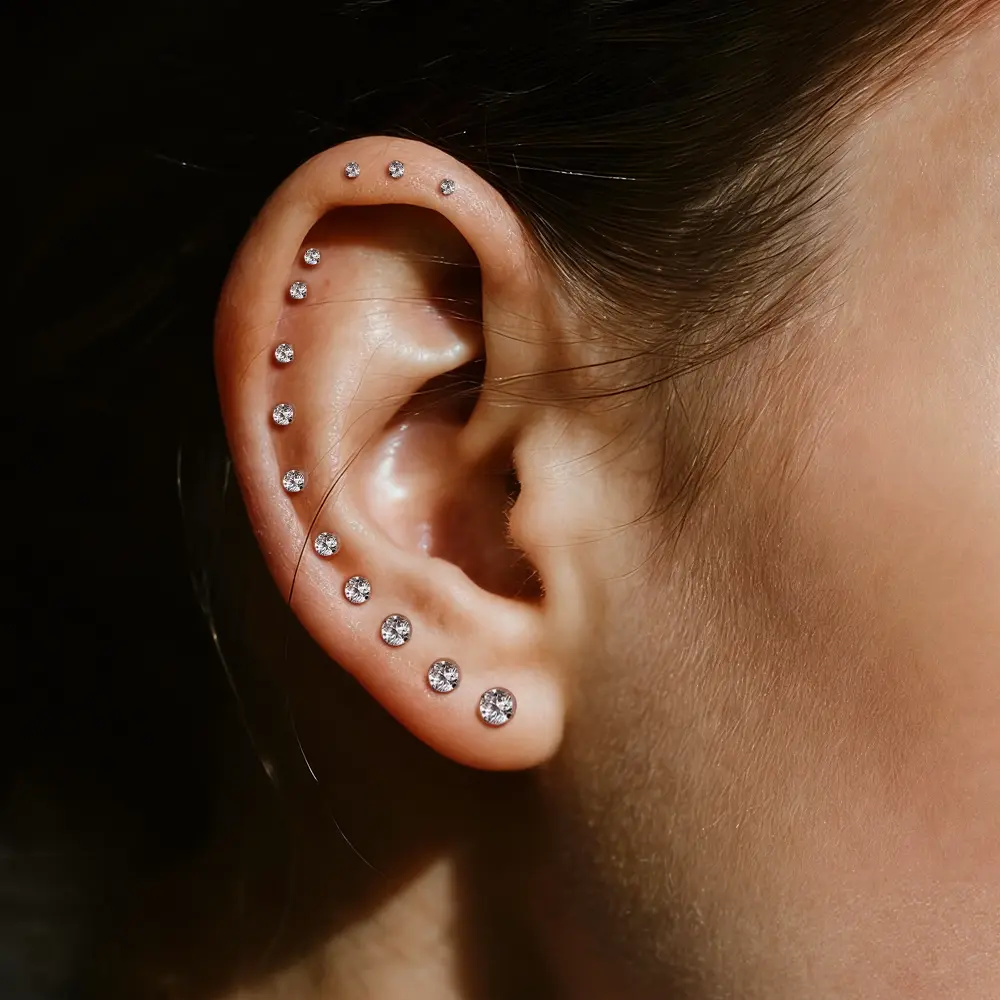Made from titanium for lightweight, comfortable everyday wear. This flat back stud features a sparkling CZ top and a secure push pin design for easy styling. Great for lip, nostril, helix, and cartilage piercings. Minimal, versatile, and easy to mix with your daily ear stack.
