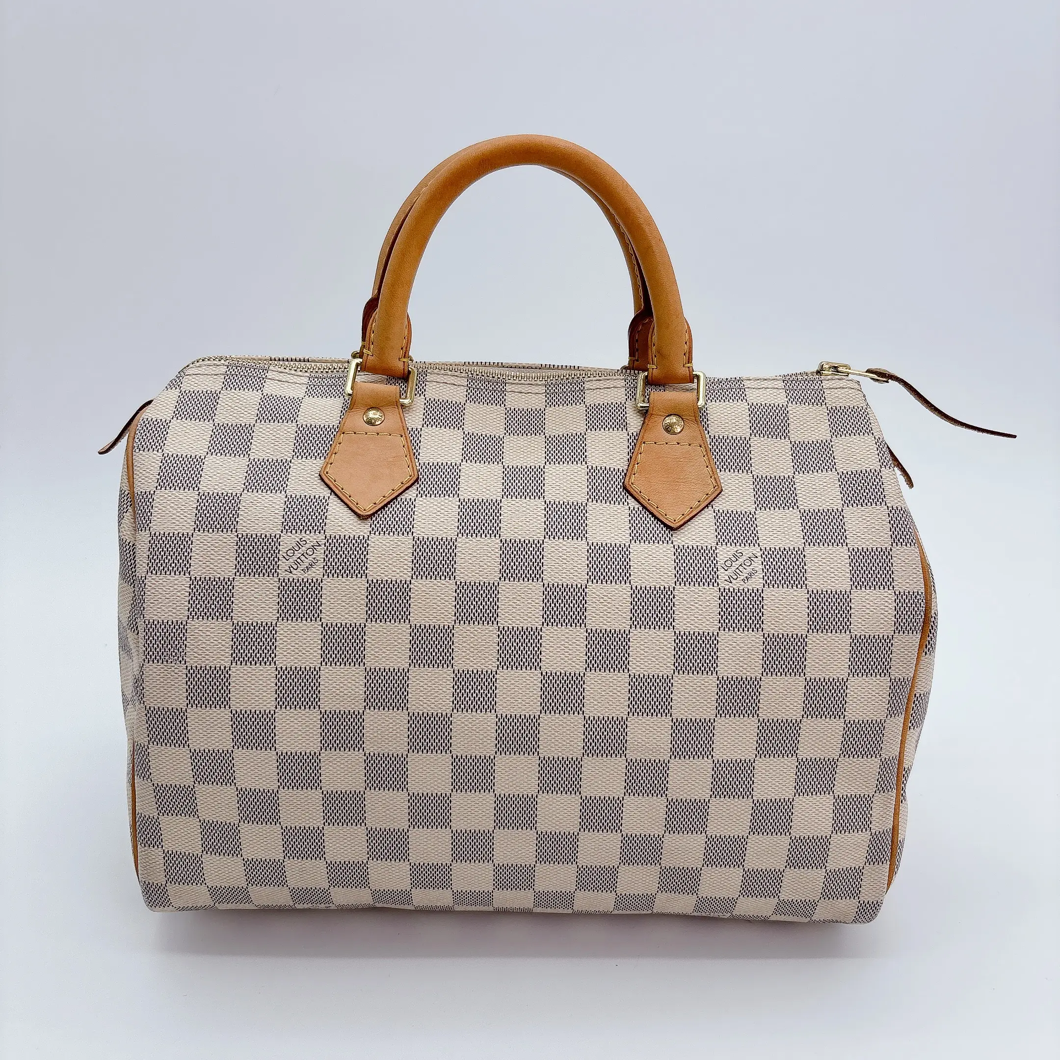 5. Pre-owned Louis Vuitton Speedy 30 Damier Azur Purse