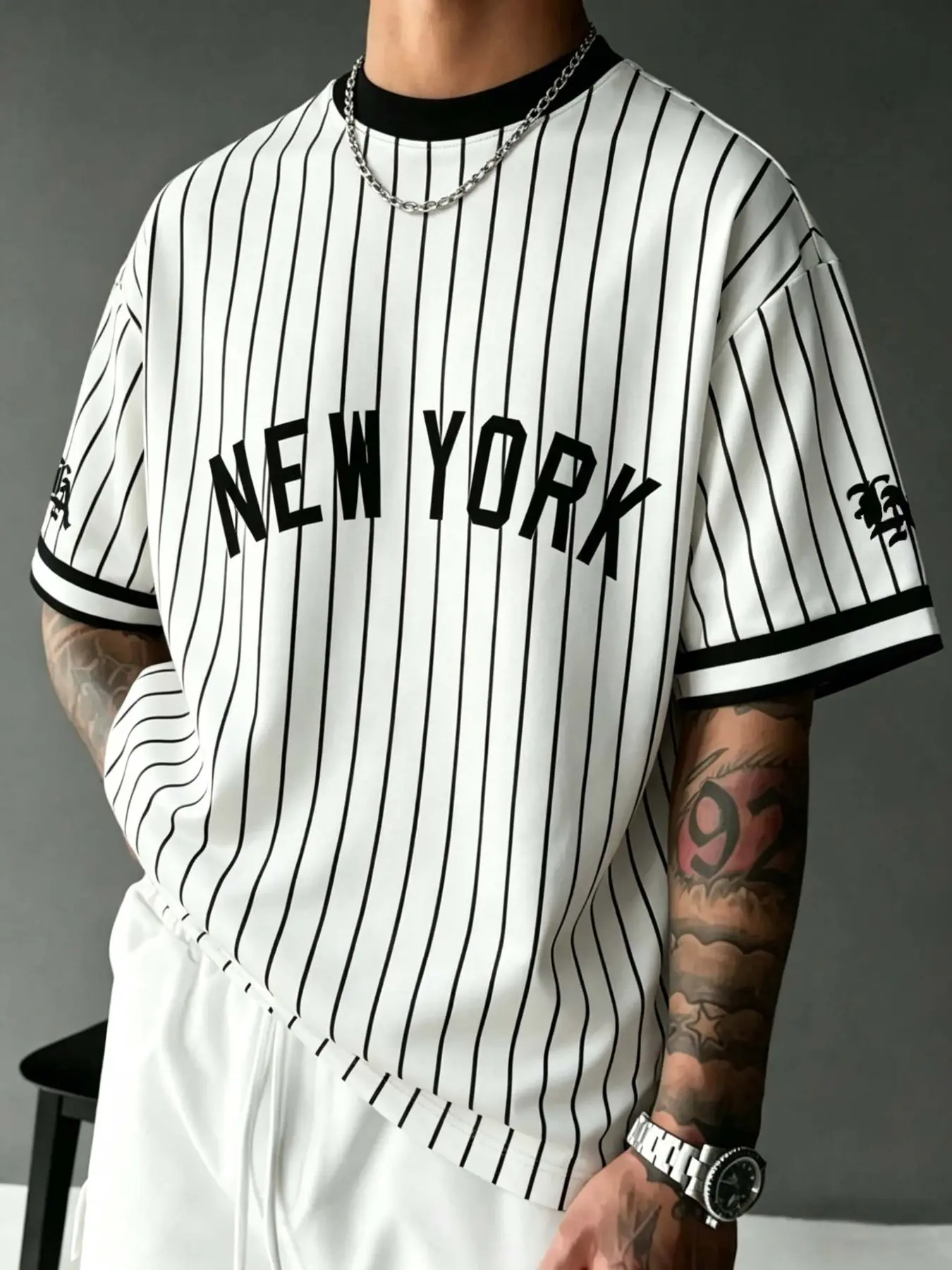 π₯ Viral New York Striped Baseball T-shirt - Retro Street Top, Men's Breathable Casual Top, Y2K Style, Perfect for Daily Clothing and Street Fashion