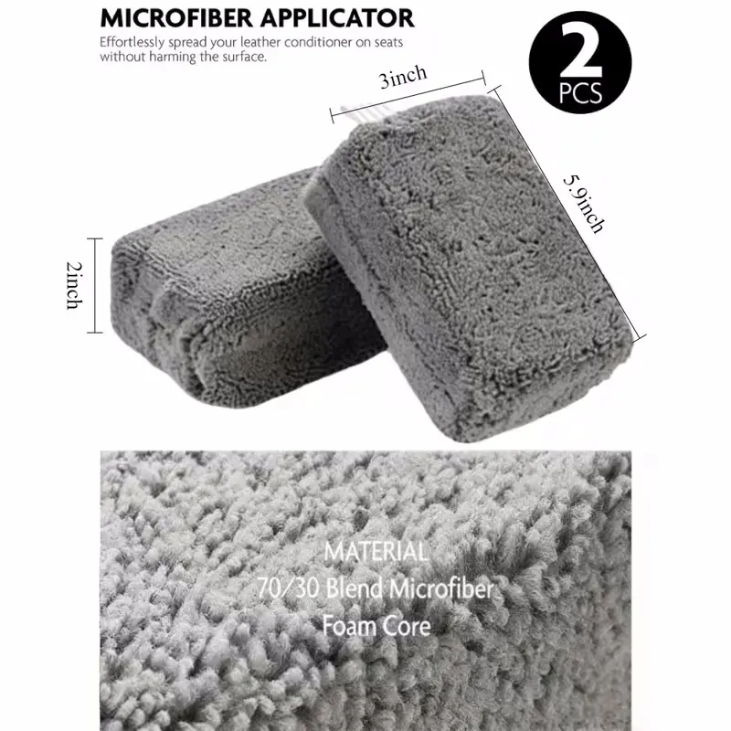 [ Microfiber Applicator] The microfiber applicator pad is perfect for conditioning and protecting leather seats and upholstery in any fine vehicle. Made with 70/30 blend microfiber that stay soft through dozens of wash and dry cycles. With a thick foam core inside that feels plush and firm in the hand, and ensures even coverage over leather