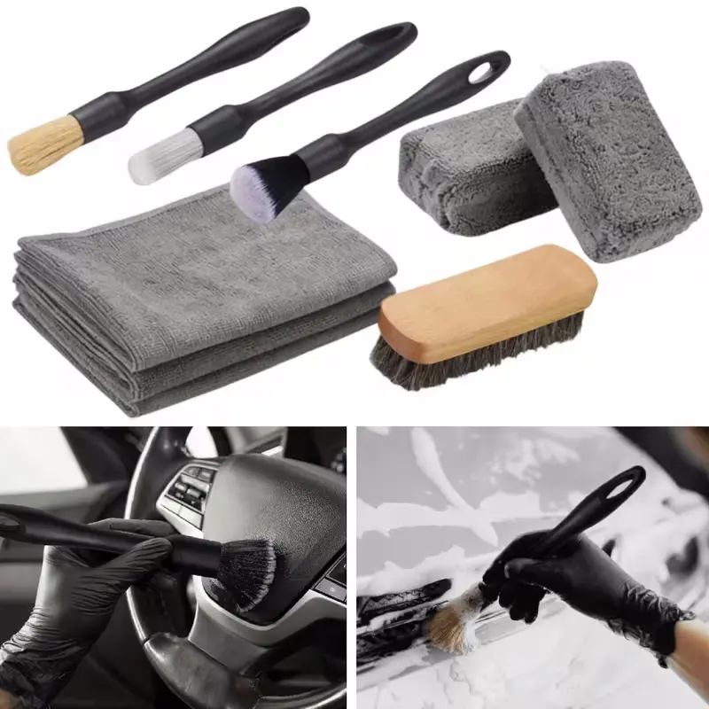 [ Ergonomic Detailing Brushes & Bristles] The detailing brushes featured with natural boar hair, microfiber & synthetic fiber. Soft and gentle bristles with densely packed, wont fall out. Can be wet and dry used, easily reaching into the deep or tight space. Comfortable ergonomics handle for powerful cleaning and low fatigue