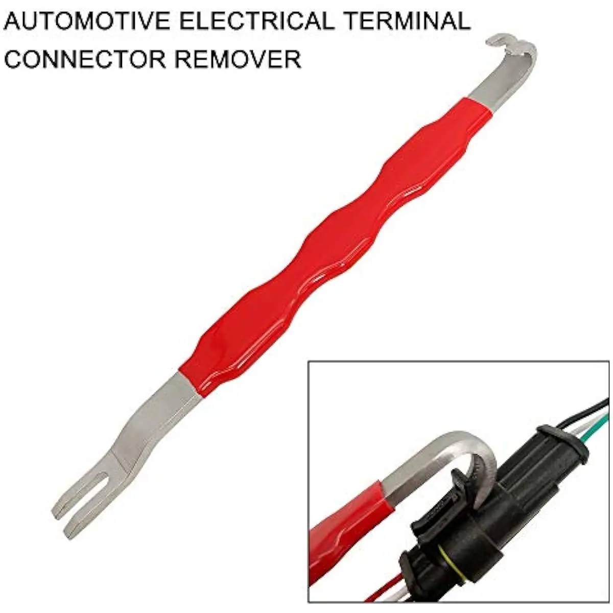 Features: Double-ended design makes it more convenient for you to do the removal job. Easy to carry, easy to use. The electrical connector remover can separate the connectors easier and quicker without causing damage. The remover can be used with most electrical connectors of different cars. Allows you access the electrical connectors at any angle. If you have any questions, please feel free to contact us. We will try our best to meet your satisfaction. Specifications: Color: Red Weight: 70g/2.5oz Size: 19*2.5*2cm/7.5*1in Package List: 1*Electrical Connector Remover