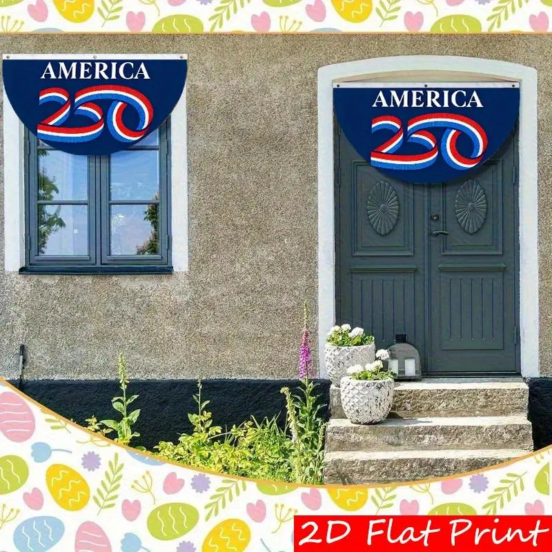 1pc Semi-Circular America 250 Patriotic Outdoor Banner, 1776-2026 Design for Christmas Halloween, Durable 2D Flat Print Lawn & Garden Decor