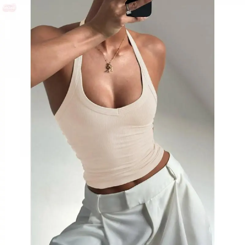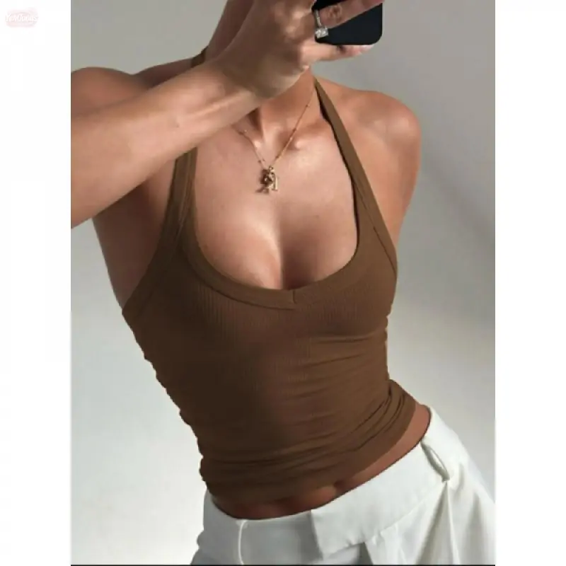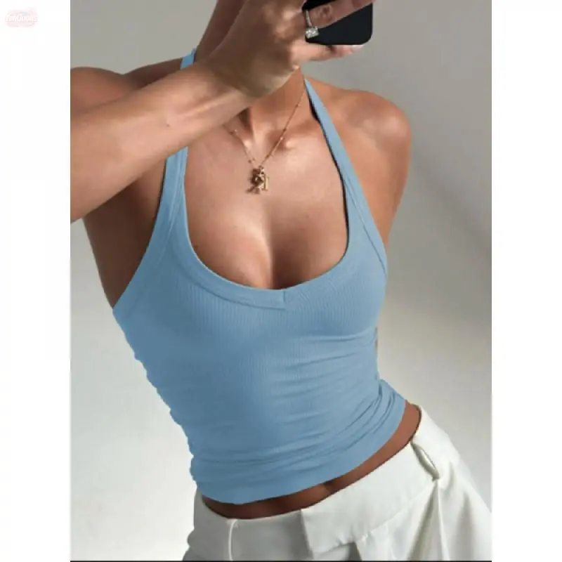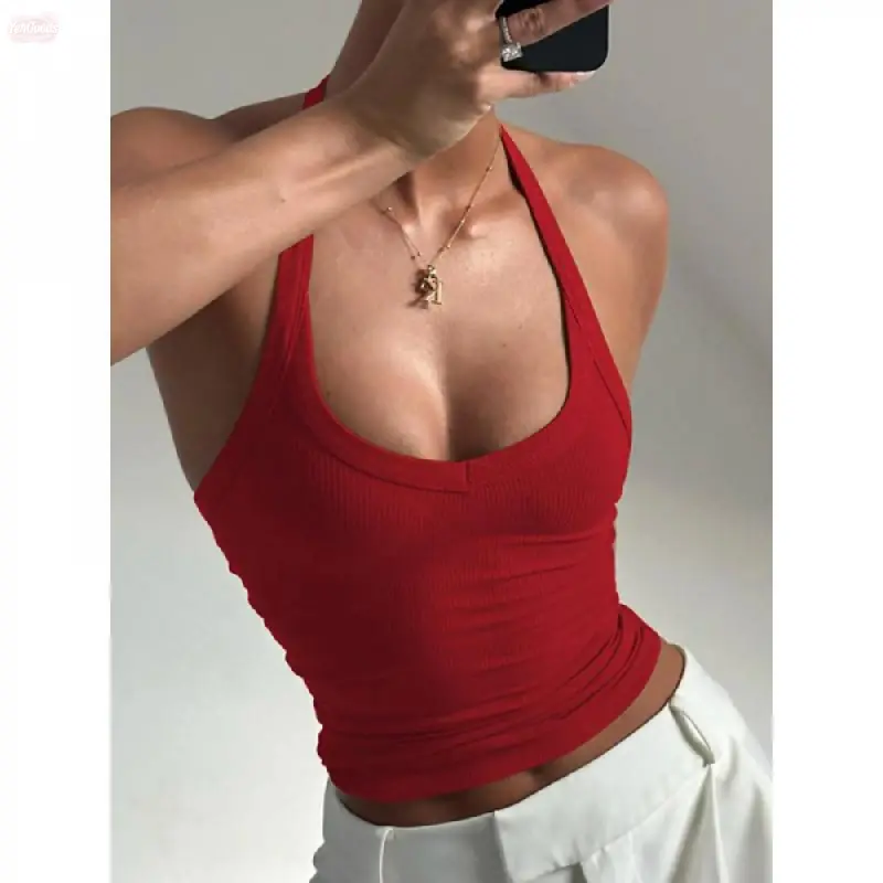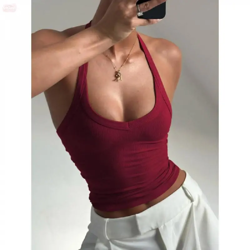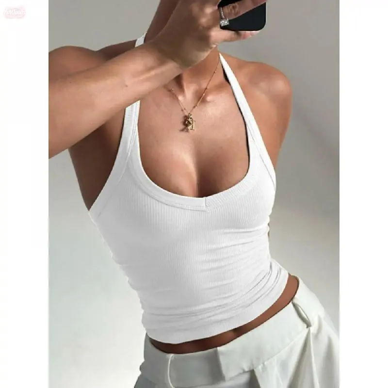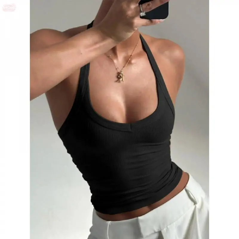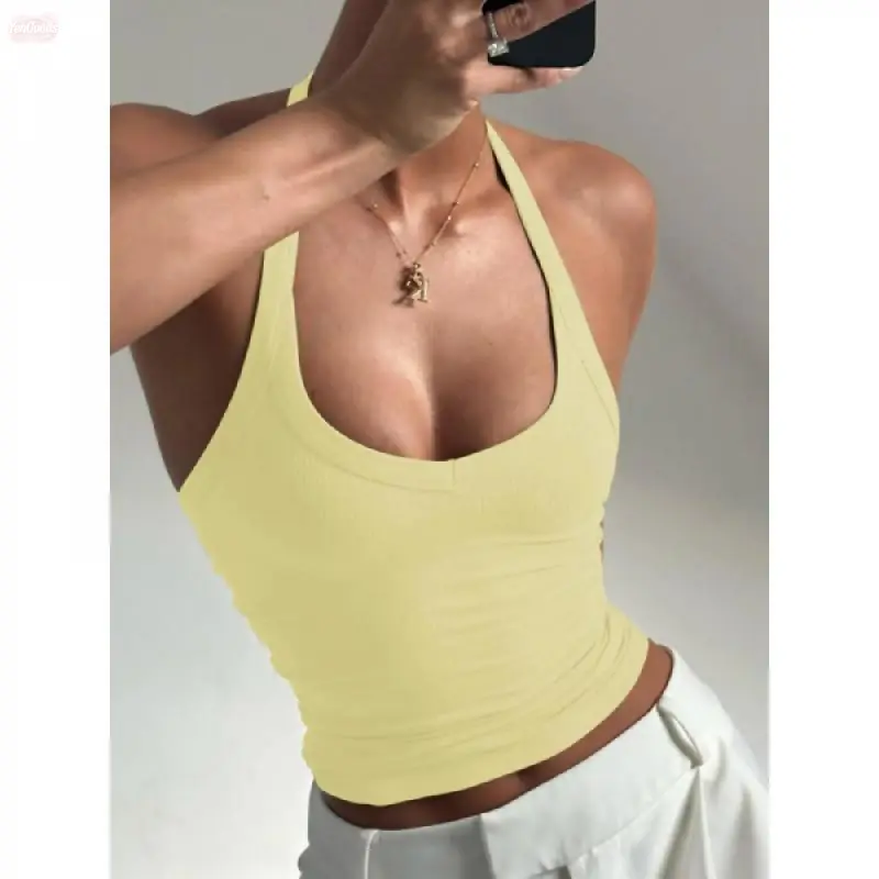 YehGoods 2026 Women'S Solid Ribbed Halter Neck Tank Top, Active Top, Casual Sleeveless Top For Daily Wear, Clothes For All Seasons shirts women