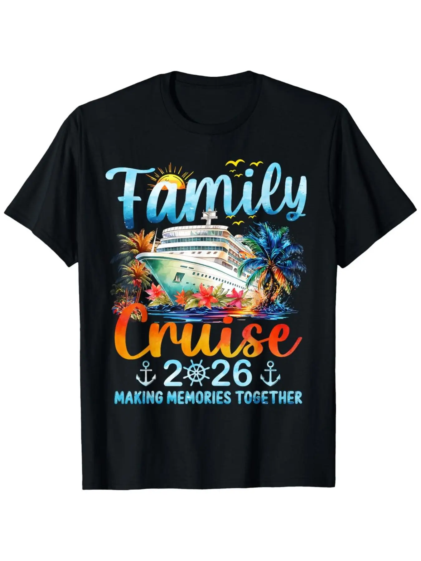 2026 Family Cruise Theme Parent-Child T-Shirt- "Create Beautiful Memories Together" Print Ultra Soft Breathable Men's Crew Neck Shirt Comfortable Casual Summer Wear Suitable for 2026 Cruise Vacations and Family Gatherings(All Seasons Suitable), PLUS