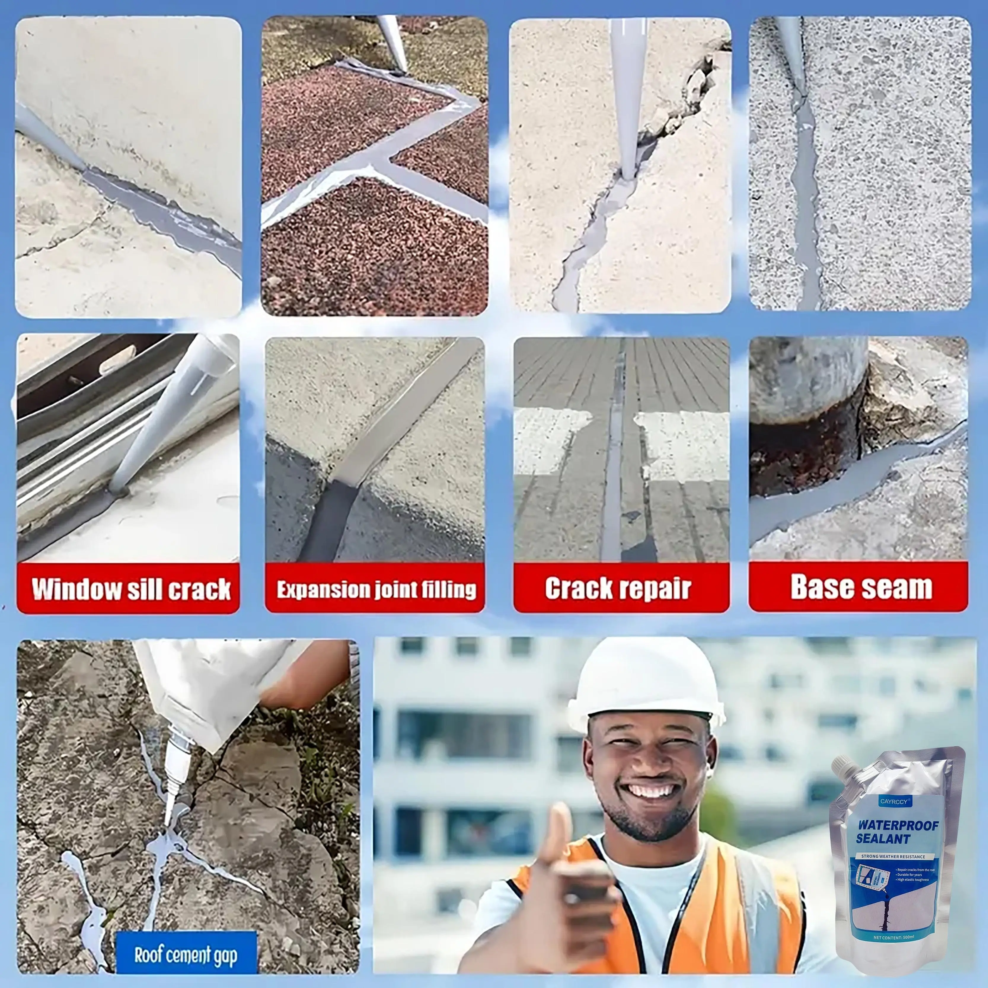 1 - High-performance repair adhesive: A large-volume flat concrete crack waterproof repair sealant made from high-quality raw materials, featuring strong adhesion and crack resistance. It has multiple tensile effects and can effectively prevent the base surface from developing cracks again. One bottle of this adhesive can solve all your house repair problems.