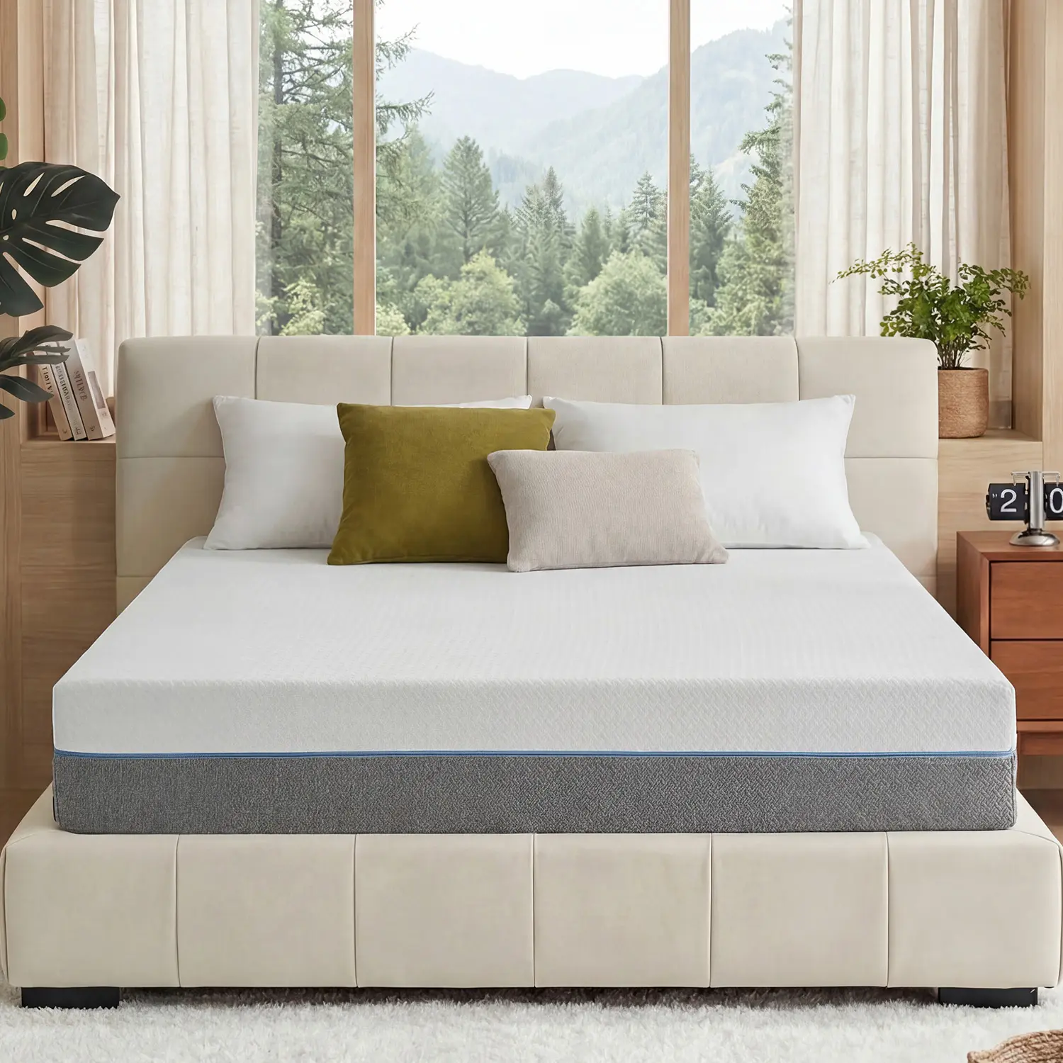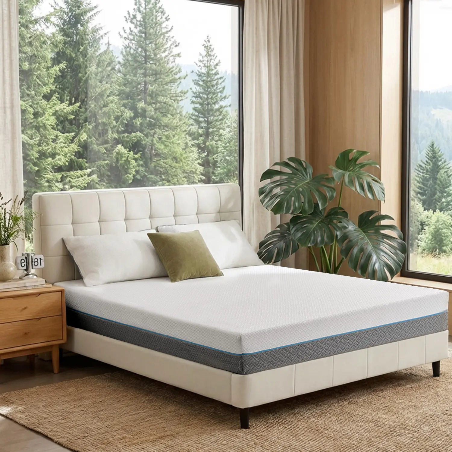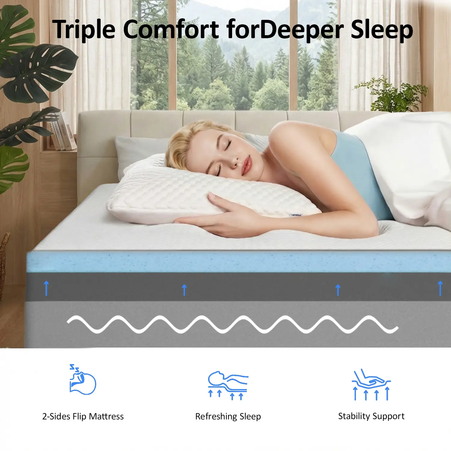 Choose between Firm and Extra Firm settings for your perfect sleep. This mattress combines Gel Memory Foam with High-Density Support, ensuring comfort and support. Ideal for back pain relief, it adapts to your body's needs. The removable, fiberglass-free cover is easy to clean and maintain. CertiPUR‑US Certified, it guarantees safety and quality.