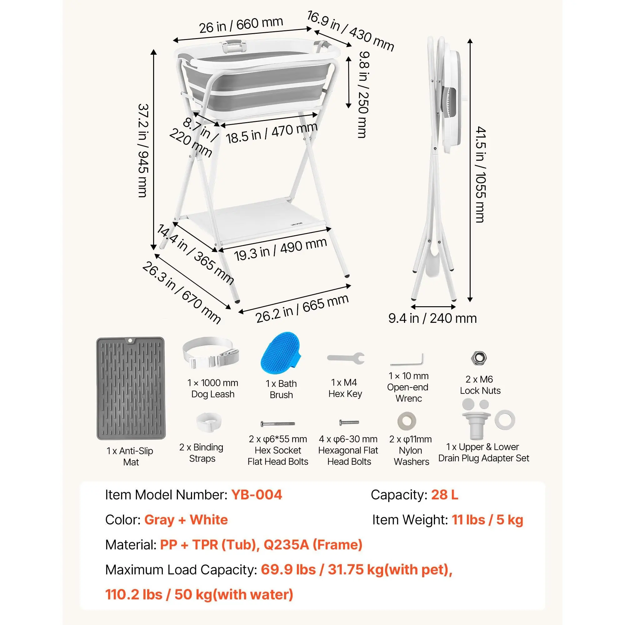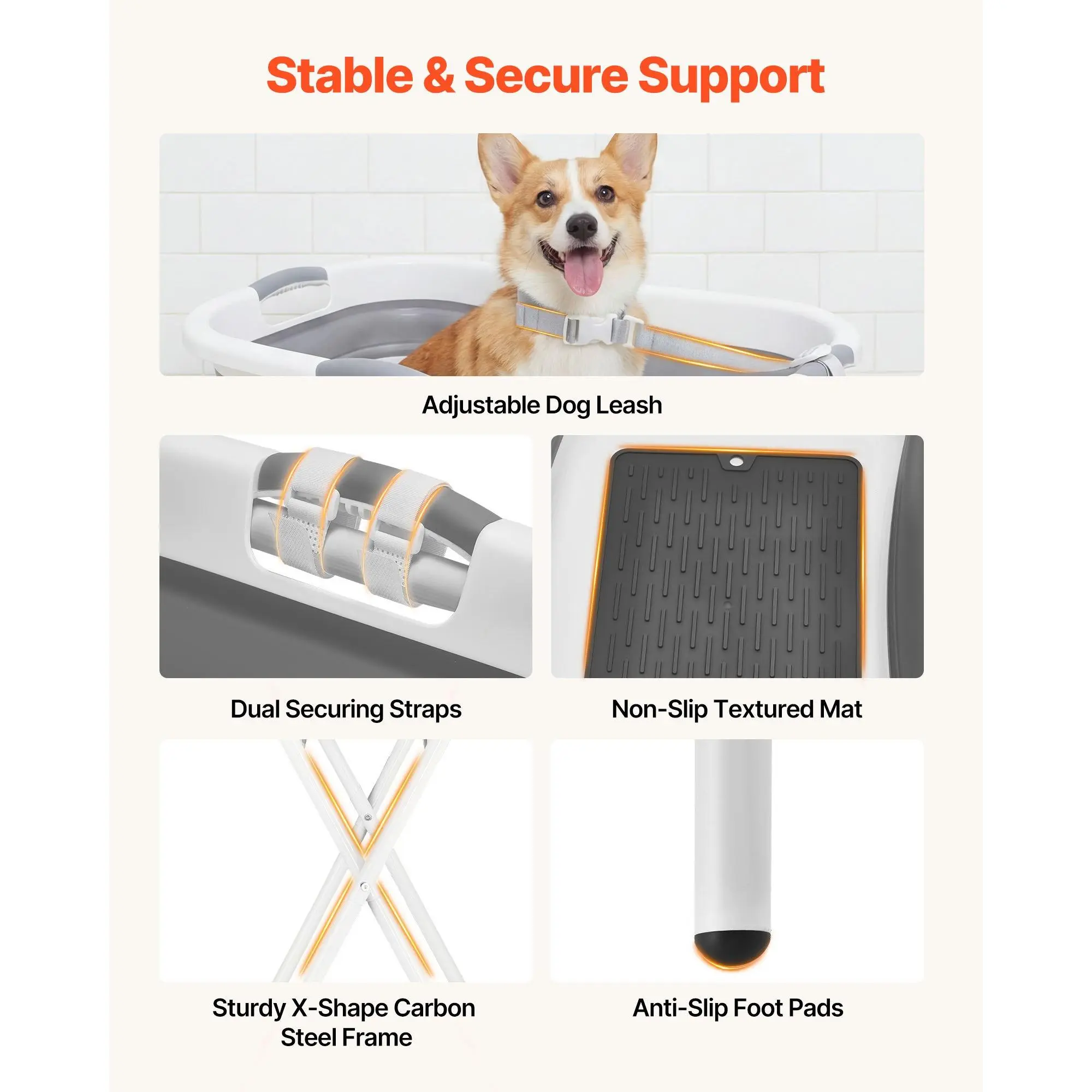 This elevated, foldable pet bathtub raises your pet to a comfortable working height, helping reduce bending and squatting. Designed to ease everyday strain on your back and knees during grooming.