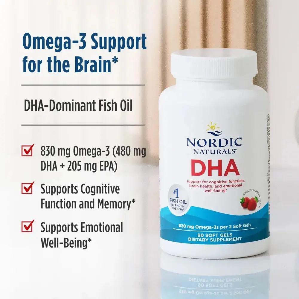 DHA-DOMINANT FORMULA - Nordic Naturals DHA supports healthy memory, cognition, emotional well-being, and the nervous system in the form of an easy-to-swallow soft gel.